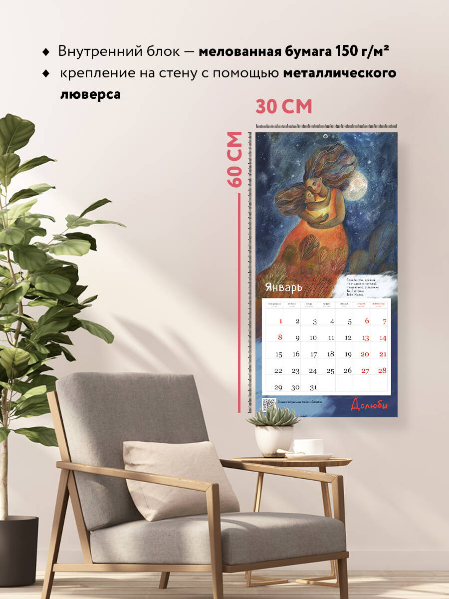 Долюби. Поэтический календарь на 2024 год, который поддержит в любой ситуации (300х300 мм)