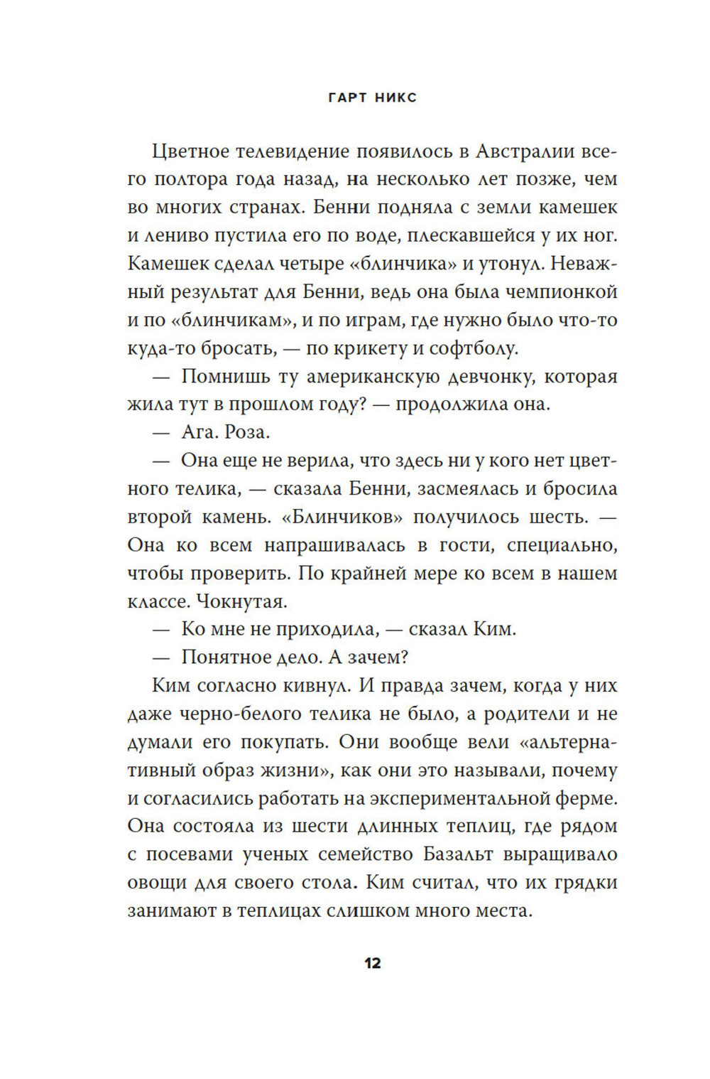 Это несправедливо. С момента появления на свет сестры Эйлы Ким Базальт живет в ее тени. Эйла - вундеркинд, и все вокруг только и твердят, какая она умная. А по мнению Кима, ей явно не хватает здравого смысла. Однажды на прогулке Эйла находит загадочный предмет, судя по всему, инопланетного происхождения. И у Кима появляются серьезные основания для беспокойства, ведь теперь Эйла, кажется, способна контролировать сознание окружающих... По ее мнению, так будет лучше для всех. А как на самом деле? Похоже, Киму придется не только найти способ спасти сестру, но и защитить Землю от Эйлы и тех сил, которые она высвободила. Гарт Никс - австралийский писатель, автор фэнтезийных сериалов «Старое Королевство» и «Ключи от Королевства», научно-фантастических романов и романов для детей и подростков, а также множества рассказов. Произведения Гарта Никса переведены на 42 языка и не раз занимали первые позиции в списке бестселлеров.| Издательство | Азбука |