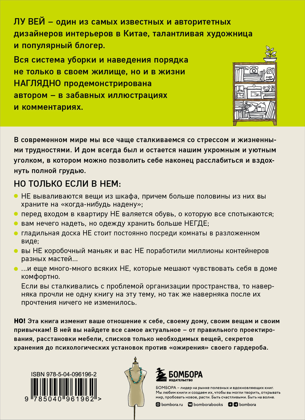 В современном мире мы все чаще сталкиваемся со стрессом и жизненными трудностями. И дом всегда был и остается нашим укромным и уютным уголком, в котором можно позволить себе наконец расслабиться и вздохнуть полной грудью. Но только если в нем: - НЕ вываливаются вещи из шкафа, причем больше половины из них вы храните на «когда-нибудь надену»; - перед входом в квартиру НЕ валяется обувь, о которую все спотыкаются; - вам нечего надеть, но одежду хранить больше НЕГДЕ; - гладильная доска НЕ стоит постоянно посреди комнаты в разложенном виде; - если вы НЕ коробочный маньяк и вас НЕ поработали миллионы контейнеров разных мастей... ...И еще много-много всяких НЕ, которые мешают чувствовать себя в доме комфортно. Если вы сталкивались с проблемой организации пространства, то наверняка прочли не одну книгу на эту тему, но так же наверняка после их прочтения ничего не изменилось. НО! Эта книга изменит ваше отношение к себе, своему дому, своим вещам и своим привычкам! В ней вы найдете все самое актуальное - от правильного проектирования, расстановки мебели, списков только необходимых вещей, секретов хранения, до психологических установок против «ожирения» своего гардероба. Лу Вей - одна из самых известных и авторитетных дизайнеров интерьеров в Китае, талантливая художница и популярный блогер. Вся система уборки и наведения порядка не только в своем жилище, но и жизни НАГЛЯДНО продемонстрирована автором - в забавных иллюстрациях и комментариях.| Издательство | ООО "Издательство "Эксмо" |