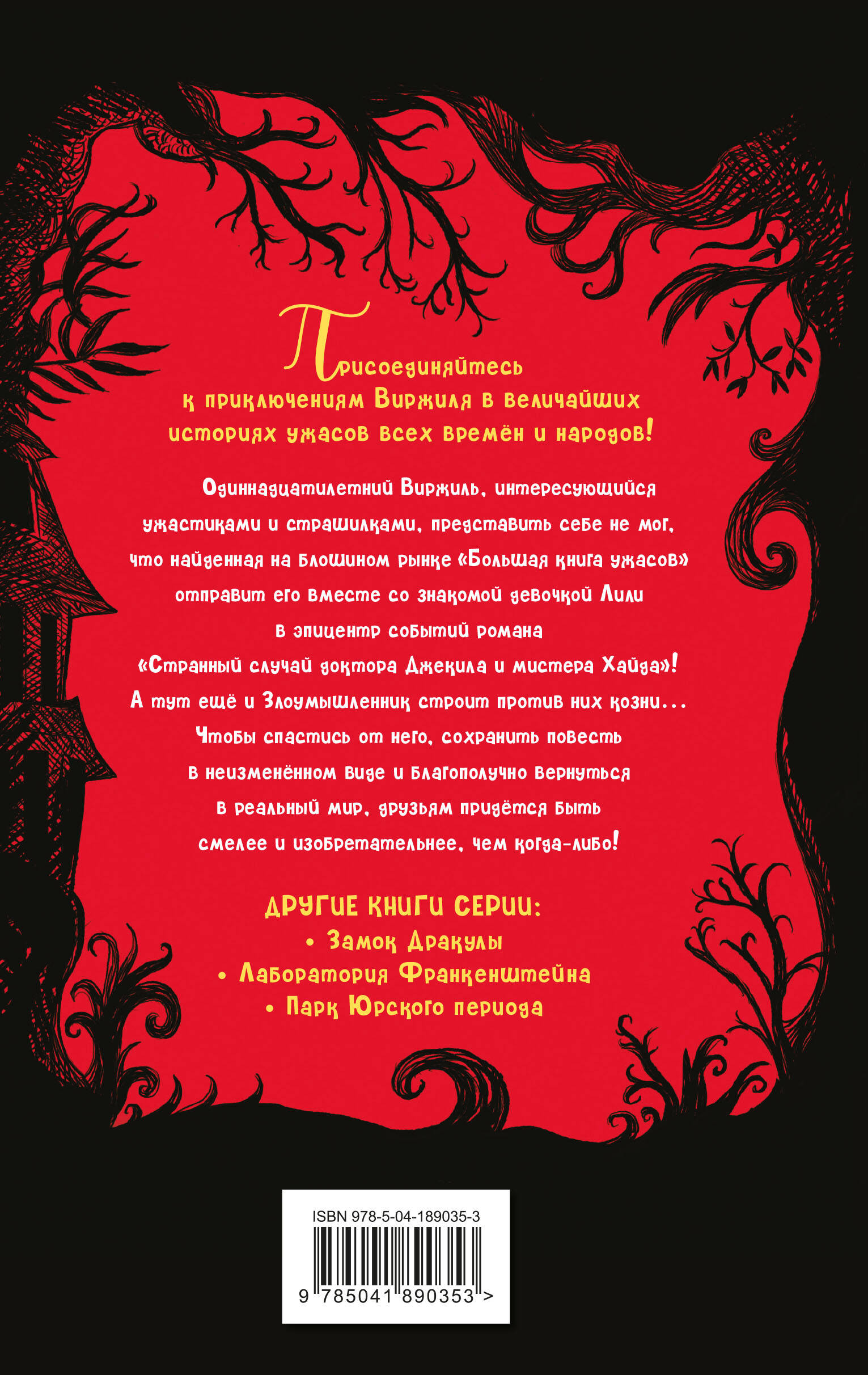 Одиннадцатилетний Виржиль, интересующийся ужастиками и страшилками, представить себе не мог, что найденная на блошином рынке «Большая книга ужасов» отправит его вместе со знакомой девочкой Лили в эпицентр событий романа «Странный случай доктора Джекила и мистера Хайда»! А тут ещё и Злоумышленник строит против них козни… Чтобы спастись от него, сохранить повесть в неизменённом виде и благополучно вернуться в реальный мир, друзьям придётся быть смелее и изобретательнее, чем когда-либо!| Издательство | ООО "Издательство "Эксмо" |