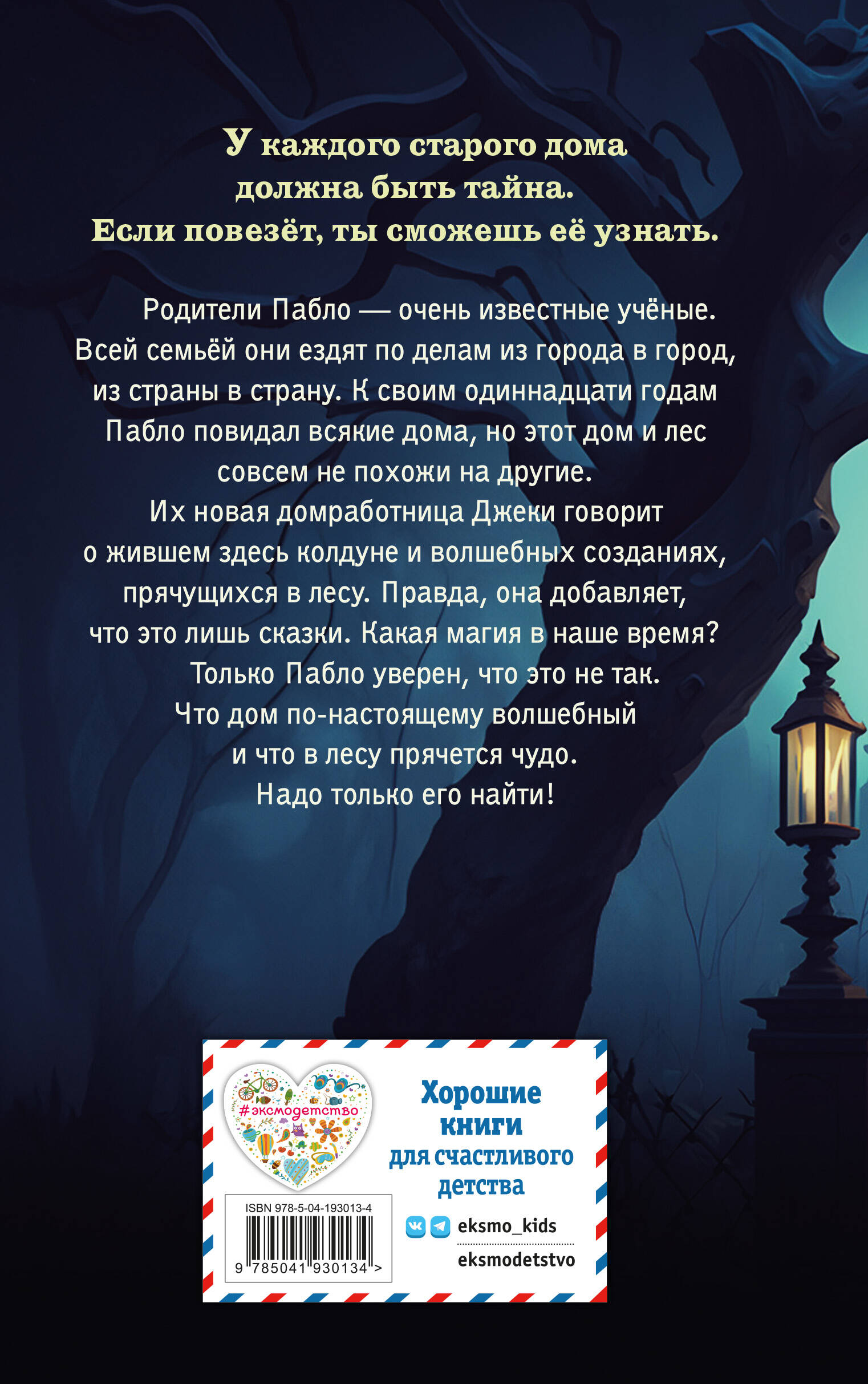 Новый дом совсем не похож на другие. В нем словно затаилось волшебство. Пабло переезжал много раз за свои одиннадцать лет и может утверждать это со всей ответственностью. Местные жители рассказывают, что в доме раньше жил колдун, и добавляют, что это лишь сказки. Какие могут быть колдуны в наше время? Только Пабло уверен, что это не так. И что он обязан разобраться с этими странностями. Мел Хартман - известная бельгийская писательница, обладательница нескольких литературных наград. Она не только автор захватывающих книг, но и специалистка по аналитике сна, так что вся фантастика и фэнтези в её книгах имеют строгую научную основу. Это книга для подростков, любящих истории про магию, заколдованные дома и необычных волшебных существ. А ещё здесь есть лестница, на которой все смеются, говорящий дверной молоток и очень возмущённая стена. Обложка нарисована известной художницей Марией Огонёк. Книга подойдёт для детей от 8 лет.| Издательство | ООО "Издательство "Эксмо" |