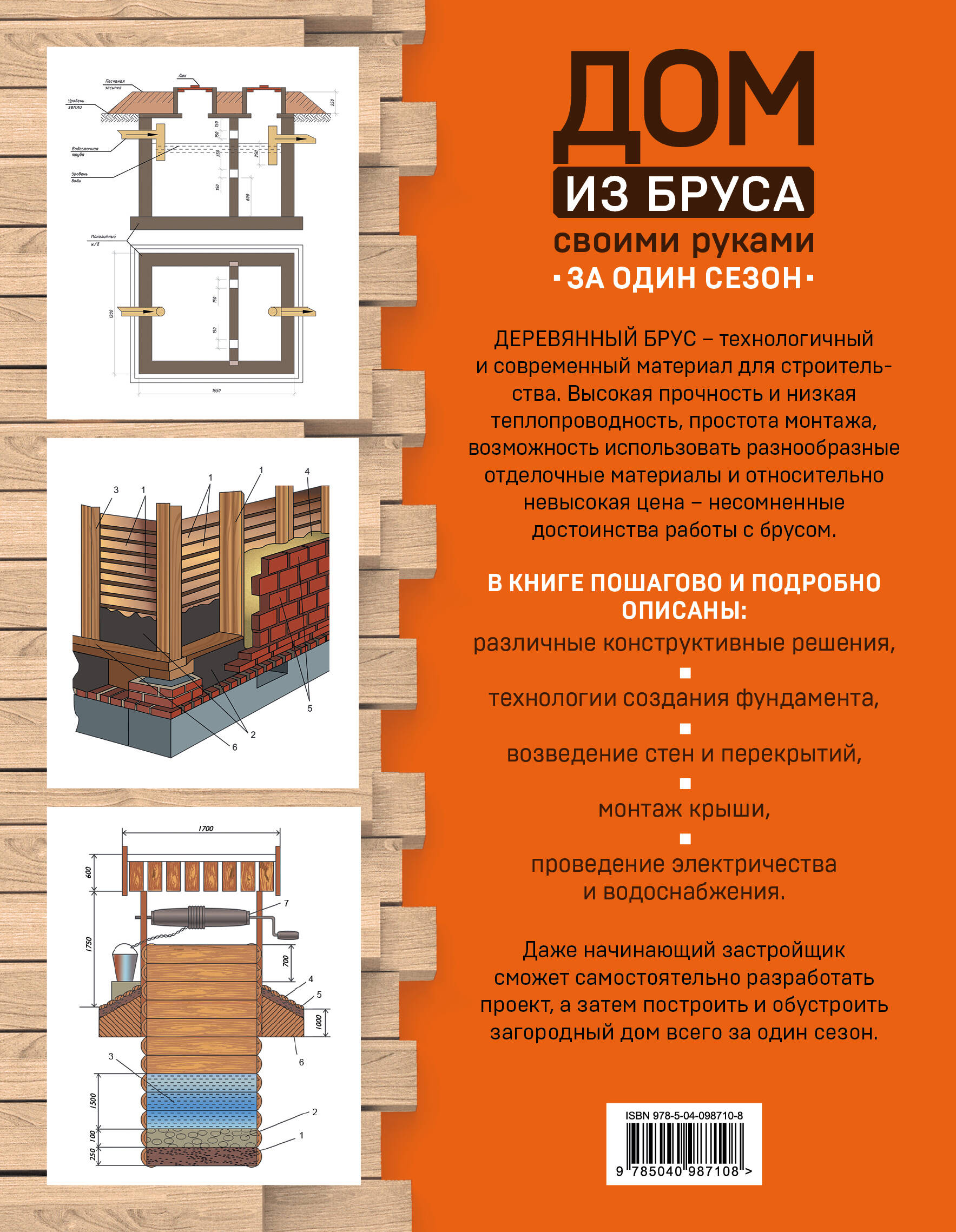 Дом из бруса - отличное решение для тех, кто ценит комфорт и экологичность. Среди достоинств этого материала: высокая прочность и низкая теплопроводность, простота монтажа, возможность использовать разнообразную отделку, а также относительно невысокая цена. В книге пошагово и подробно описаны различные конструктивные решения, технологии создания фундамента, возведения стен и перекрытий, монтажа крыши, проведения электричества и водоснабжения, которые помогут даже начинающему застройщику самостоятельно разработать проект, а затем построить и обустроить загородный дом за один сезон.| Издательство | ООО "Издательство "Эксмо" |