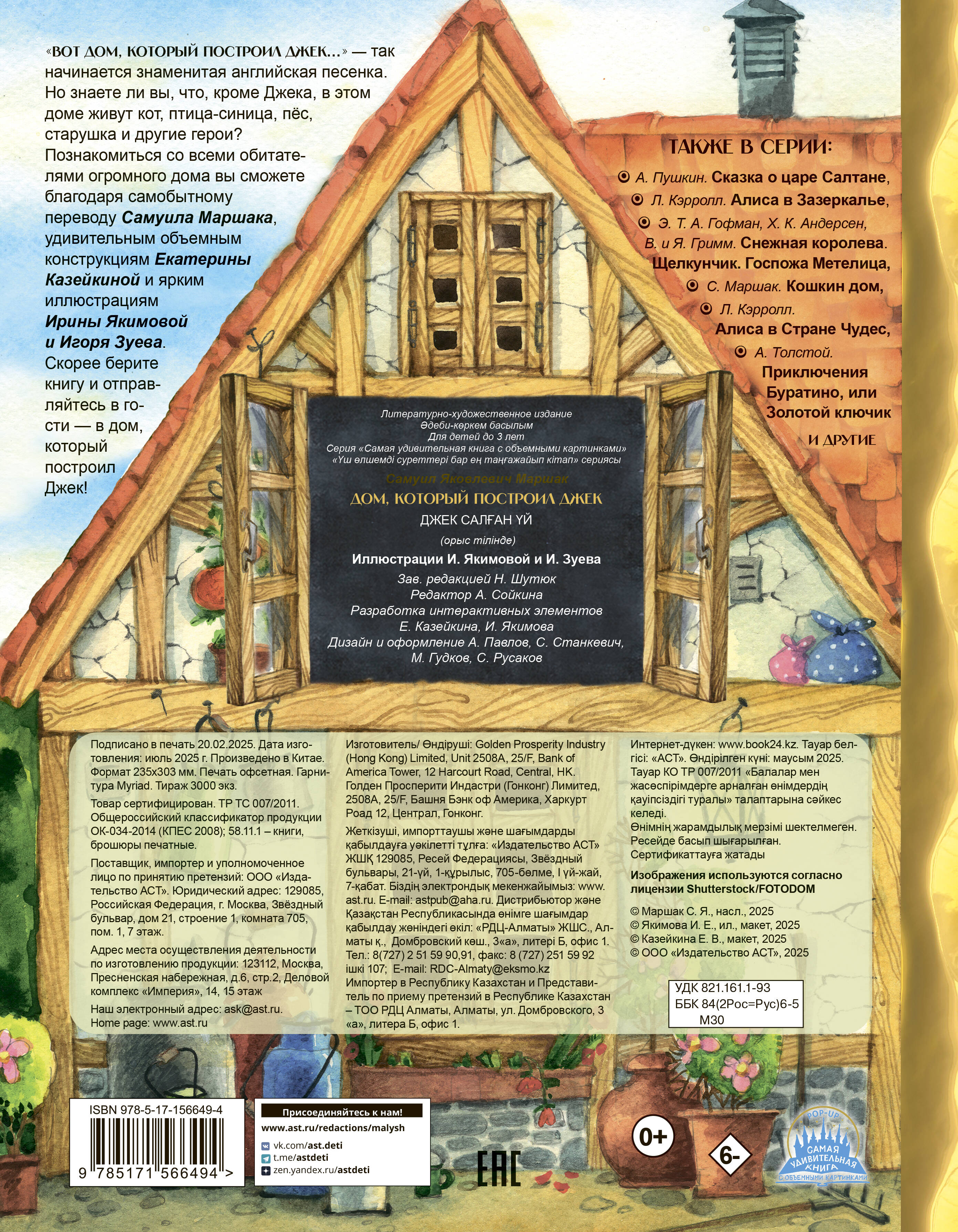 "Вот дом, который построил Джек…" - так начинается знаменитая английская песенка. Но знаете ли вы, что, кроме Джека, в этом доме живут кот, птица-синица, пёс, старушка и другие герои? Познакомиться со всеми обитателями огромного дома вы сможете благодаря самобытному переводу Самуила Маршака, удивительным объемным конструкциям Екатерины Казейкиной и ярким иллюстрациям Ирины Якимовой и Игоря Зуева. Скорее берите книгу и отправляйтесь в гости - в дом, который построил Джек!| Издательство | Издательство "АСТ" |