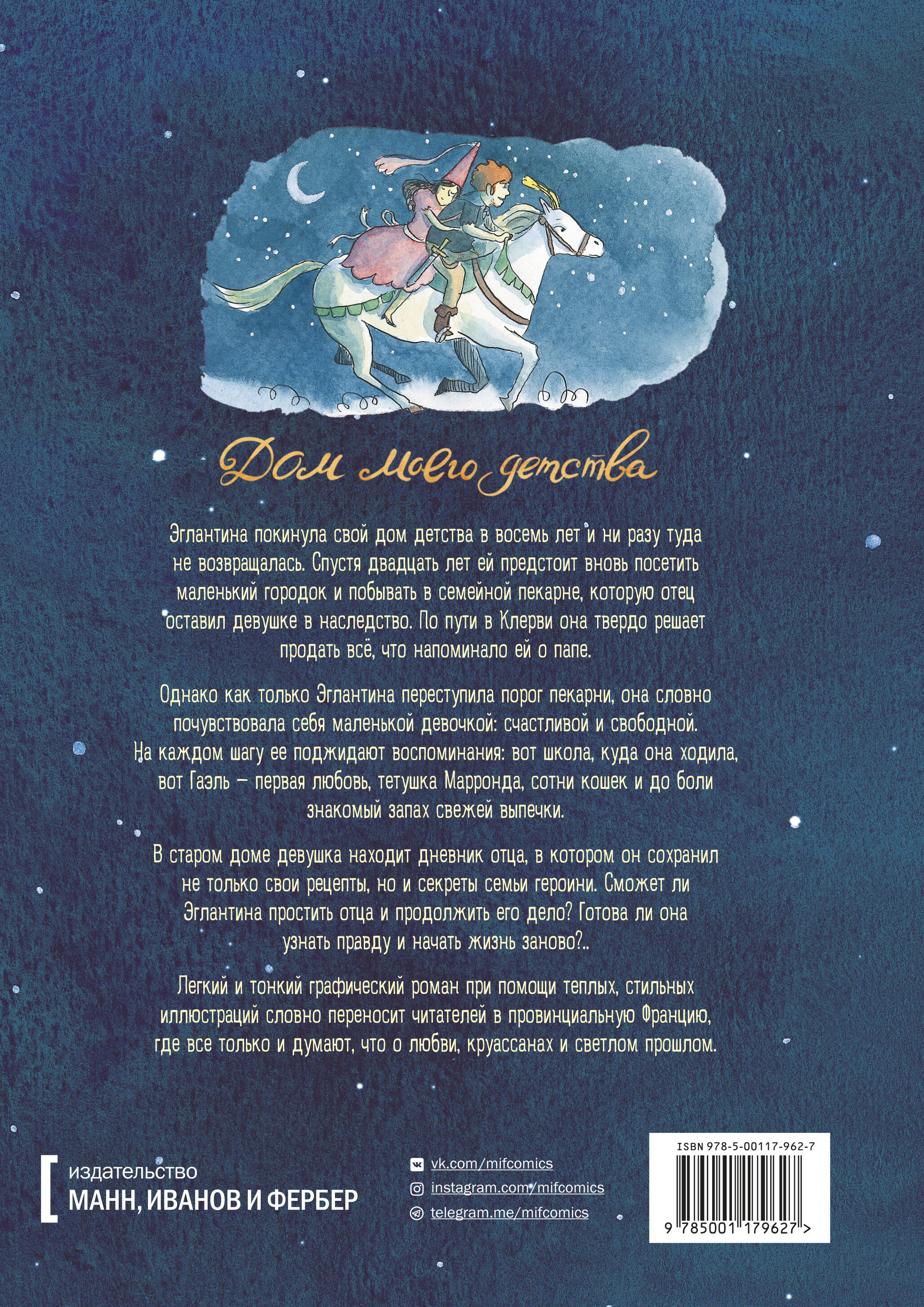 "Легкий и тонкий графический роман при помощи теплых, стильных иллюстраций словно переносит читателей в провинциальную Францию, где все только и думают, что о любви, круассанах и светлом прошлом."| Издательство | МАНН, ИВАНОВ И ФЕРБЕР ООО |