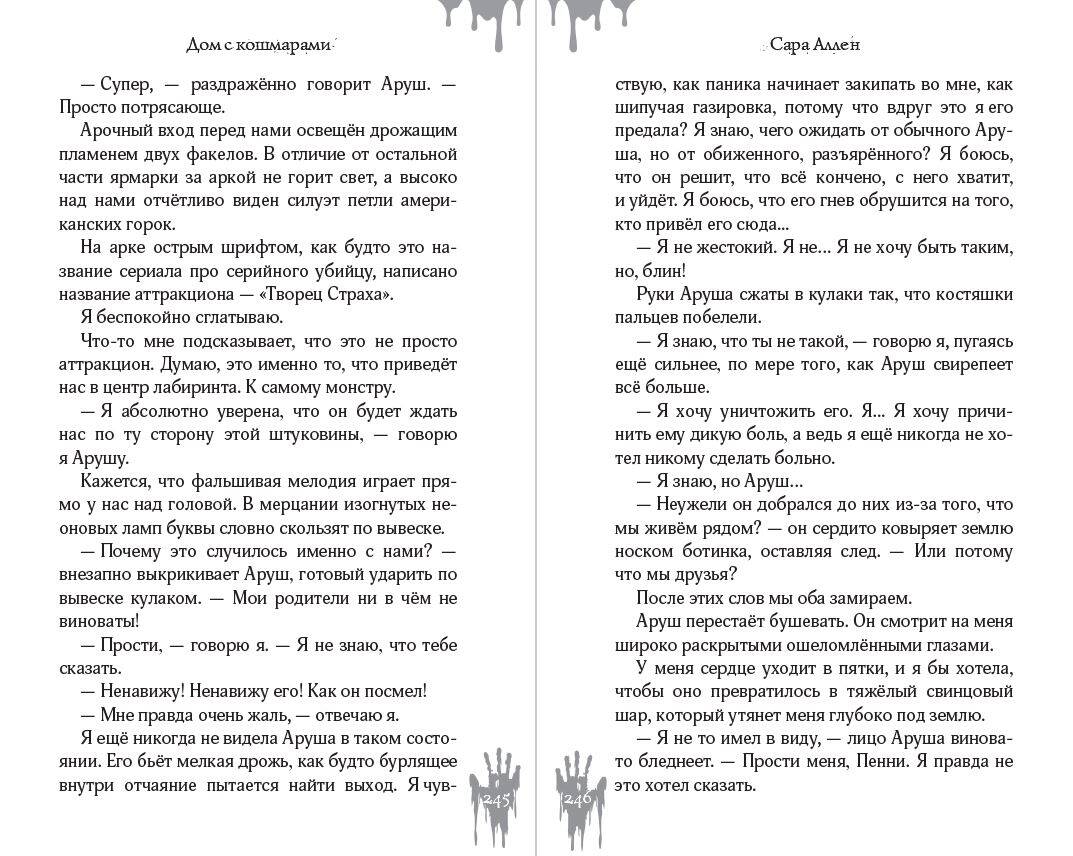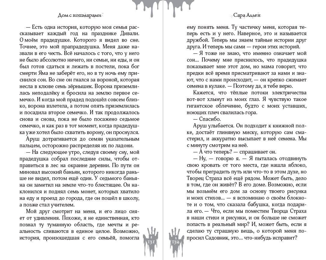 Наберитесь храбрости и войдите в «Дом с кошмарами», в нем вас ждут самые необычные страхи… и самые жуткие монстры. Пенни было всего семь лет, когда пришел Творец Страха. Он явился на Хэллоуин, сделав девочку совсем другой Пенни, и забрал ту, что не боялась темноты, чудовищ и глубины. С тех пор она начала слышать монстров под кроватью, видеть людей с пустыми глазами и призраков. Раньше Пенни делилась всем, что с ней происходит, с бабушкой, но теперь… Все эти жуткие истории хранит блокнот с подсолнухами. И они происходят всё чаще. Творец Страха живет в зловещем доме с призраками, и Пенни придется войти туда, чтобы спасти тех, кого она любит. Понравится читателям «Плюшевой головы» и «Закулисья».| Издательство | ООО "Издательство "Эксмо" |