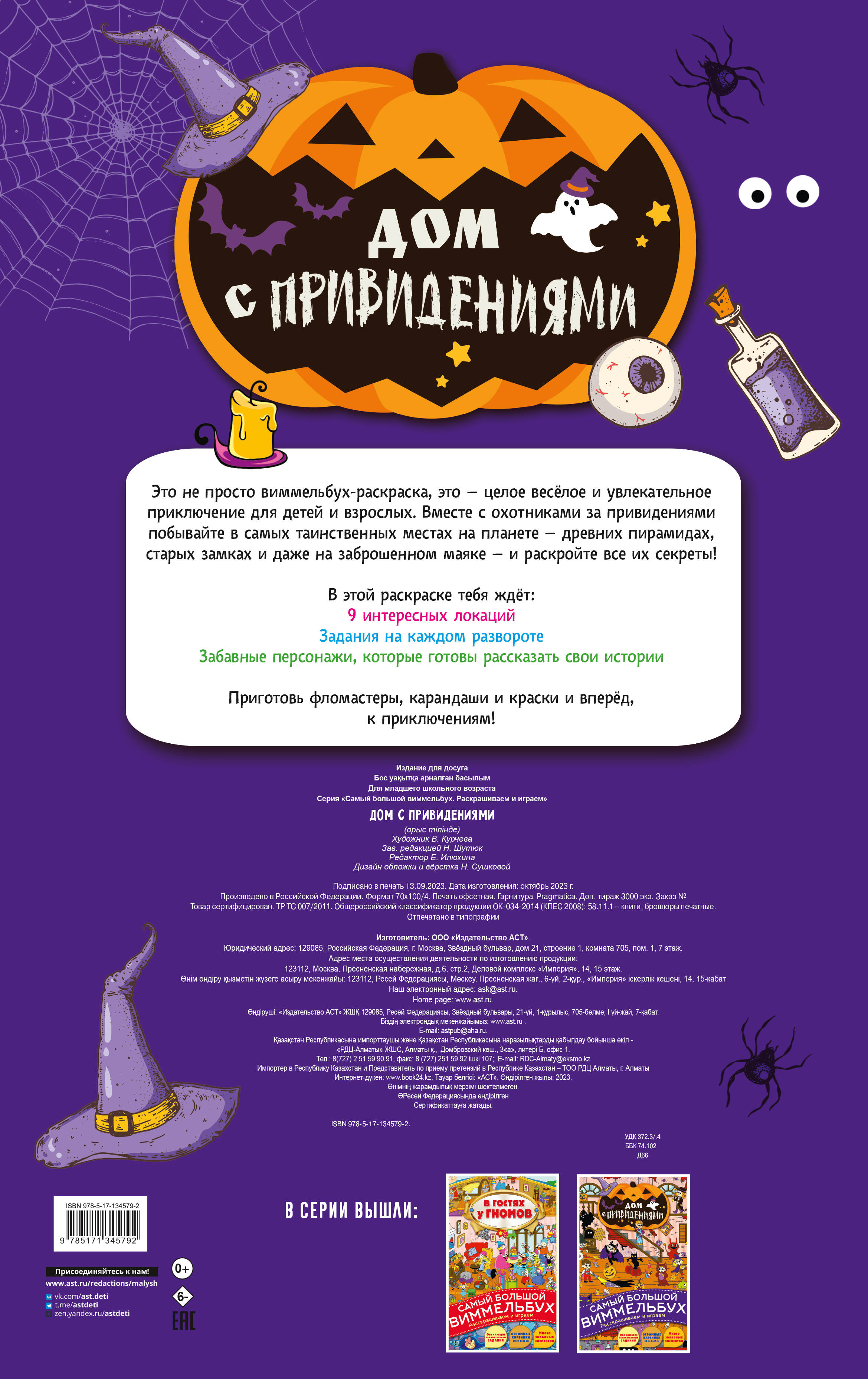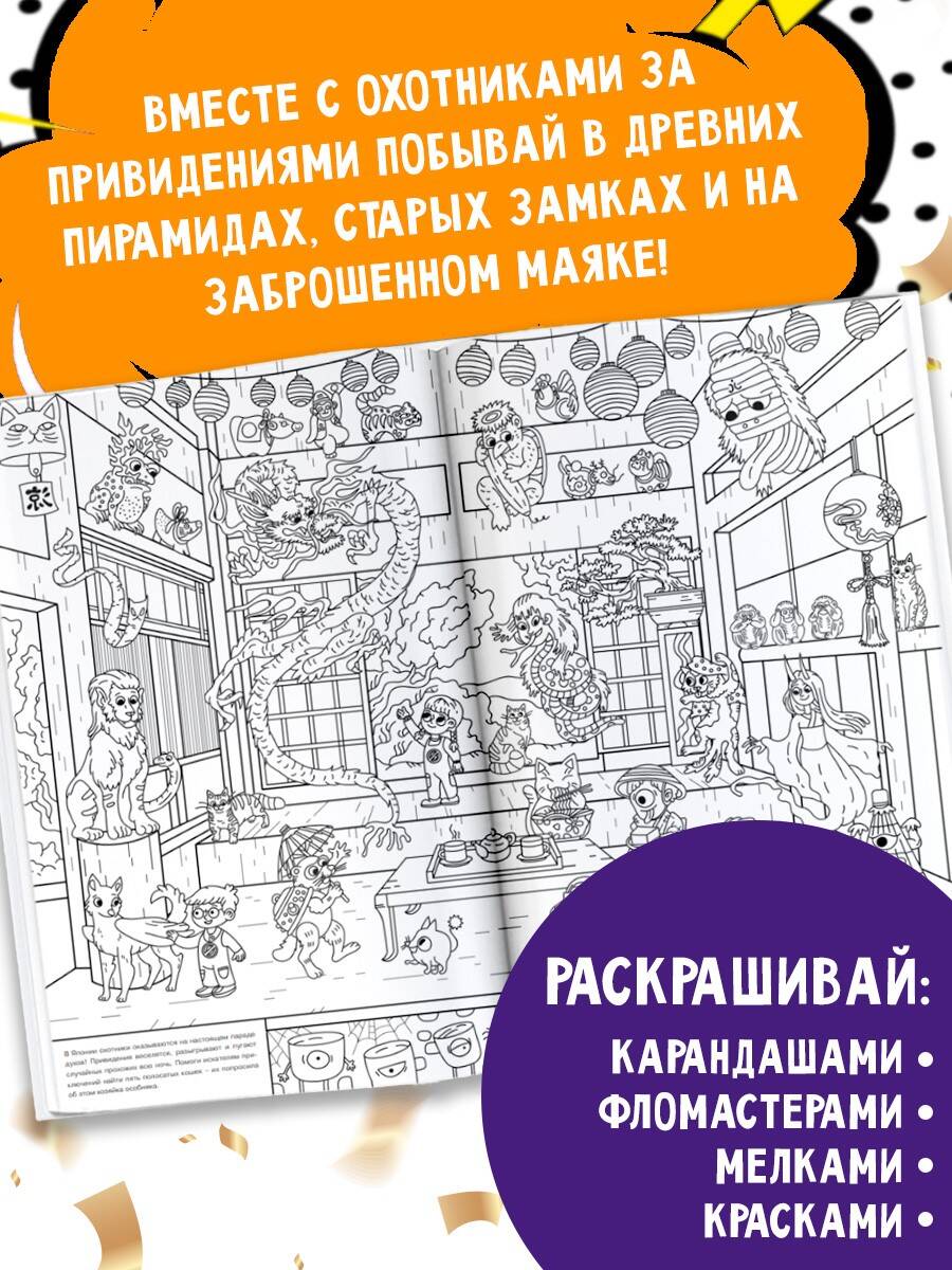 Это не просто виммельбух-раскраска, это - целое весёлое и увлекательное приключение для детей и взрослых. Вместе с охотниками за привидениями побывайте в самых таинственных местах на планете - древних пирамидах, старых замках и даже на заброшенном маяке - и раскройте все их секреты! В этой раскраске тебя ждёт: -9 интересных локаций -Задания на каждом развороте -Забавные персонажи, которые готовы рассказать свои истории Приготовь фломастеры, карандаши и краски и вперёд, к приключениям!