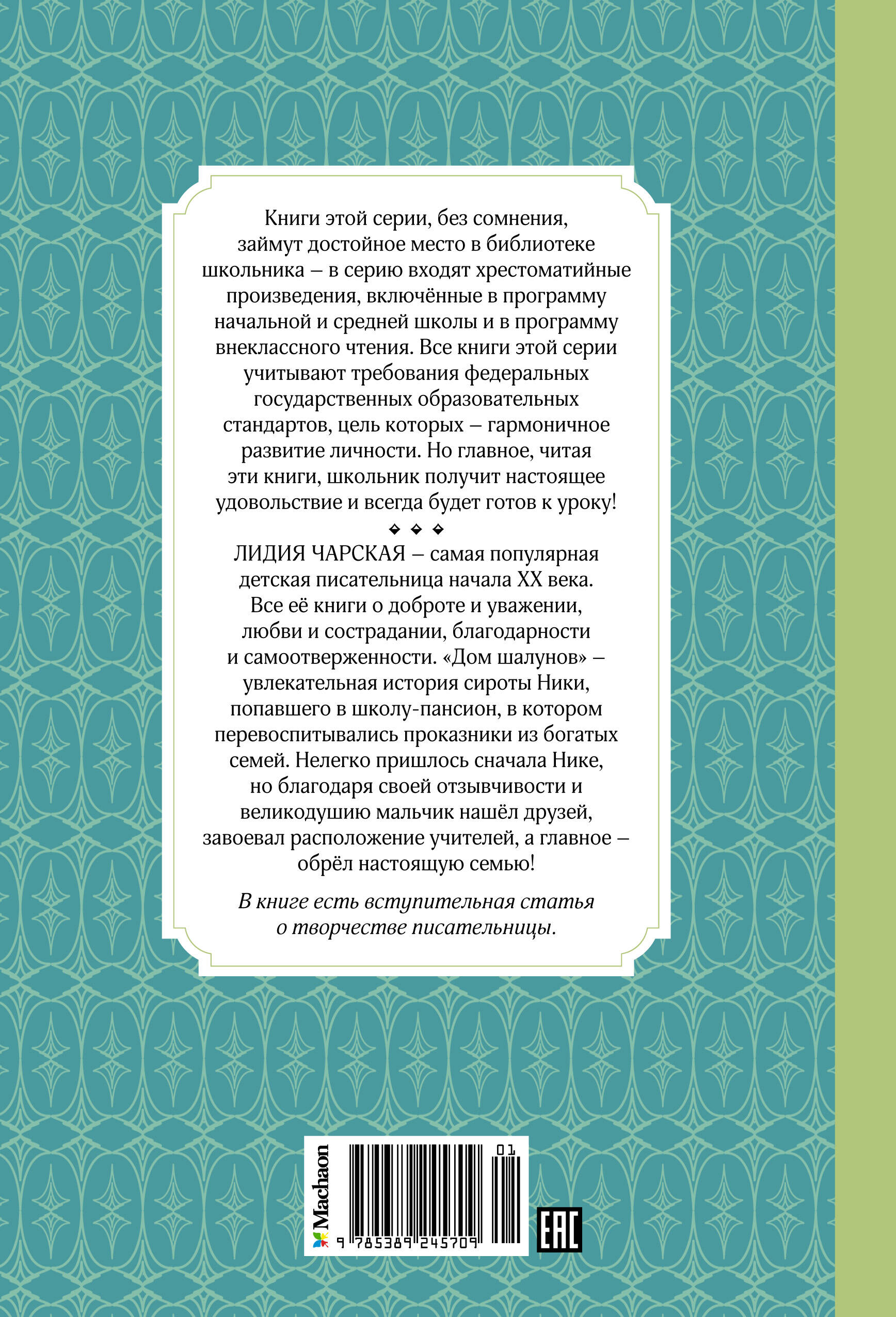Лидия Чарская - самая популярная детская писательница начала XX века. Пожалуй, никто до неё в русской литературе так проникновенно и доверительно не говорил с подростками. Все книги Чарской о доброте и уважении, любви и сострадании, благодарности и самоотверженности. "Дом шалунов" - увлекательная история сироты Ники, попавшего в школу-пансион, в котором перевоспитывались проказники из богатых семей. Нелегко пришлось сначала Нике, но благодаря своей отзывчивости и великодушию мальчик нашёл друзей, завоевал расположение учителей, а главное - обрёл настоящую семью!| Издательство | Азбука-Аттикус Издат.группа ООО |