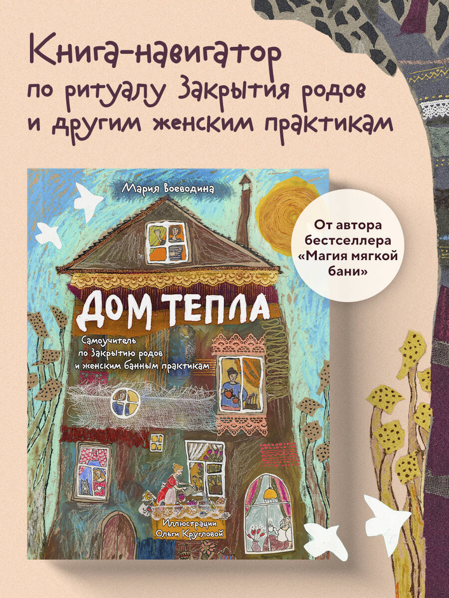 Мария Воеводина - психолог, писатель, путешественница, исследователь банного мира и основатель Первой женской банной школы. Больше 10 лет занимается Закрытием родов, разработала формат банных спа-дней. Обучает специалистов по Закрытию, проведению женских кругов и девичников. «Закрытие - это ритуал, с помощью которого мы можем завершить определённый период, например, девичество или бездетное замужество, важное событие, такое как роды или переезд, законченные отношения с людьми - с бывшим мужем или с умершим родственником. У каждого может быть какая-то незавершённая тема, которую важно для себя закрыть, чтобы было легче двигаться дальше». - Мария Воеводина «"Дом Тепла" - книга-навигатор, она поможет понять, как получить поддержку и как помогать другим, если ты хочешь сама сопровождать женщин во время тех перемен, которые с ними происходят. Тут про бани, про бизнес-завтраки, про женские круги, про ритуалы и церемонии, про вечную, как этот мир, передачу тепла от одной из нас к другой. Чтобы жизнь продолжалась». - Ирина Мальцева, психолог, преподаватель психологии, блогер «Чувствуется, что Мария многократно прожила в своей работе и в жизни все практики. Книгу легко читать, лаконичный и образный язык. Спасибо за такой чудесный подарок нам, женщинам!» - Анна Фомичёва, акушерка, доула, руководитель школы подготовки к родам «Эта книга - как тёплая ладонь на спине: бережная, честная, поддерживающая. В ней есть и ценный опыт, и знания, и практика, и, самое главное - ощущение женского круга, которого так не хватает в современном материнстве». - Женя Носаль, специалист по подготовке к родам, доула, автор книг для беременных и мам| Издательство | ООО "Издательство "Эксмо" |