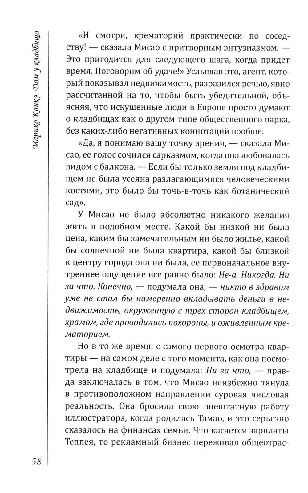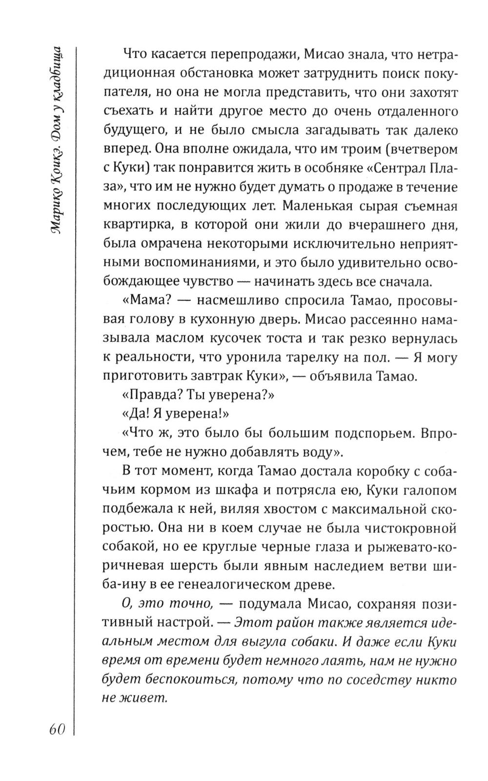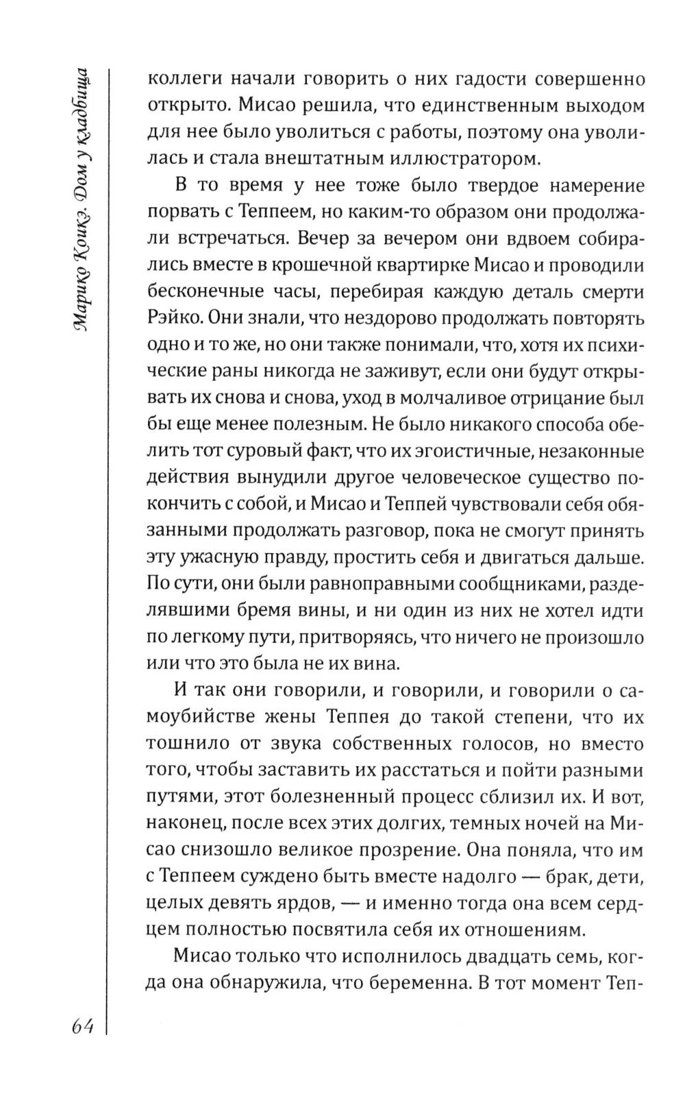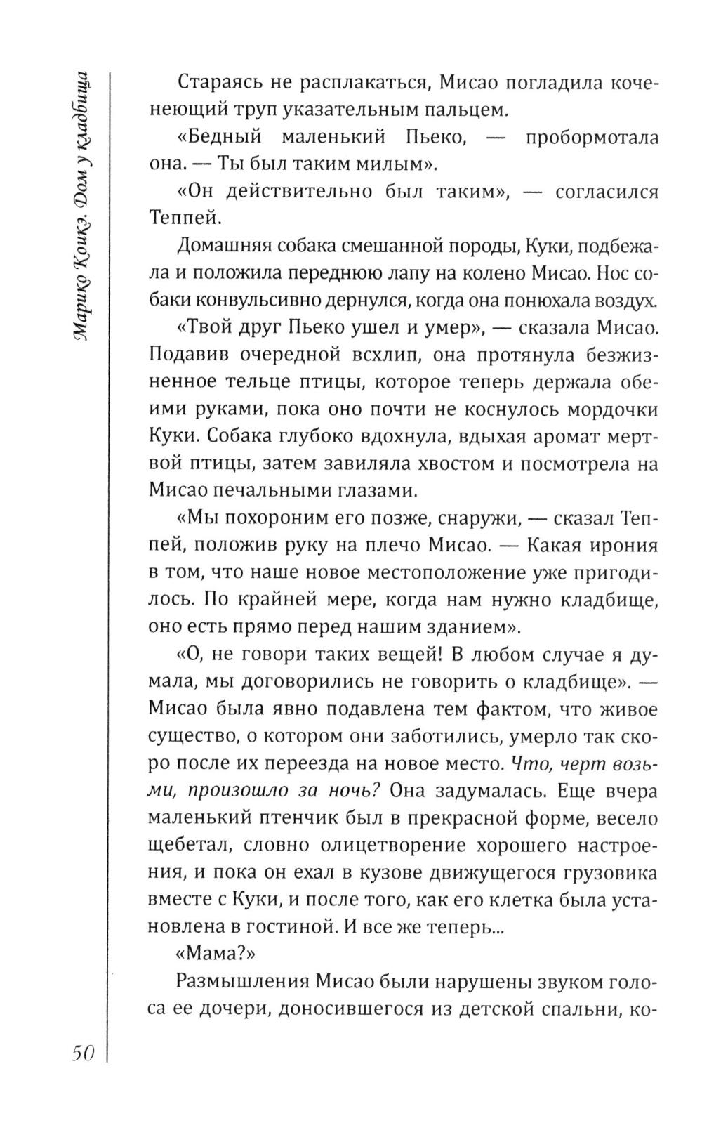 Одна из самых популярных писательниц современной Японии, Марико Койке, - признанный мастер детективов и хорроров. Особую известность ей принесли работы, в которых эти жанры переплетаются с элементами романтики. «Дом у кладбища» стал наиболее выдающимся её шедевром. Впервые опубликованный в Японии в 1986 году, этот роман рассказывает напряженную историю молодой семьи, которая верит, что нашла идеальный дом для счастливой жизни, но вскоре понимает, что за идиллическим фасадом скрывается зловещая тень - и чем дольше они остаются, тем сильнее оказываются в ловушке. Эта история о молодой паре, хранящей мрачную тайну, полна ужаса и тревоги. Они с дочерью переезжают в новенький жилой комплекс, построенный рядом с кладбищем. Когда странные и пугающие события начинают учащаться, жильцы постепенно съезжают, пока семья не остаётся одна с кем-то (или чем-то), скрытым в подвале. Психологический ужас нарастает с каждой минутой, с каждой сценой, приводя к развязке, после которой вы десять раз подумаете, прежде чем снова спускаться в подвал.| Издательство | Родина |