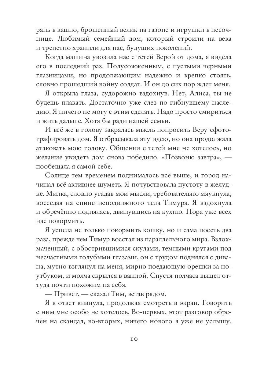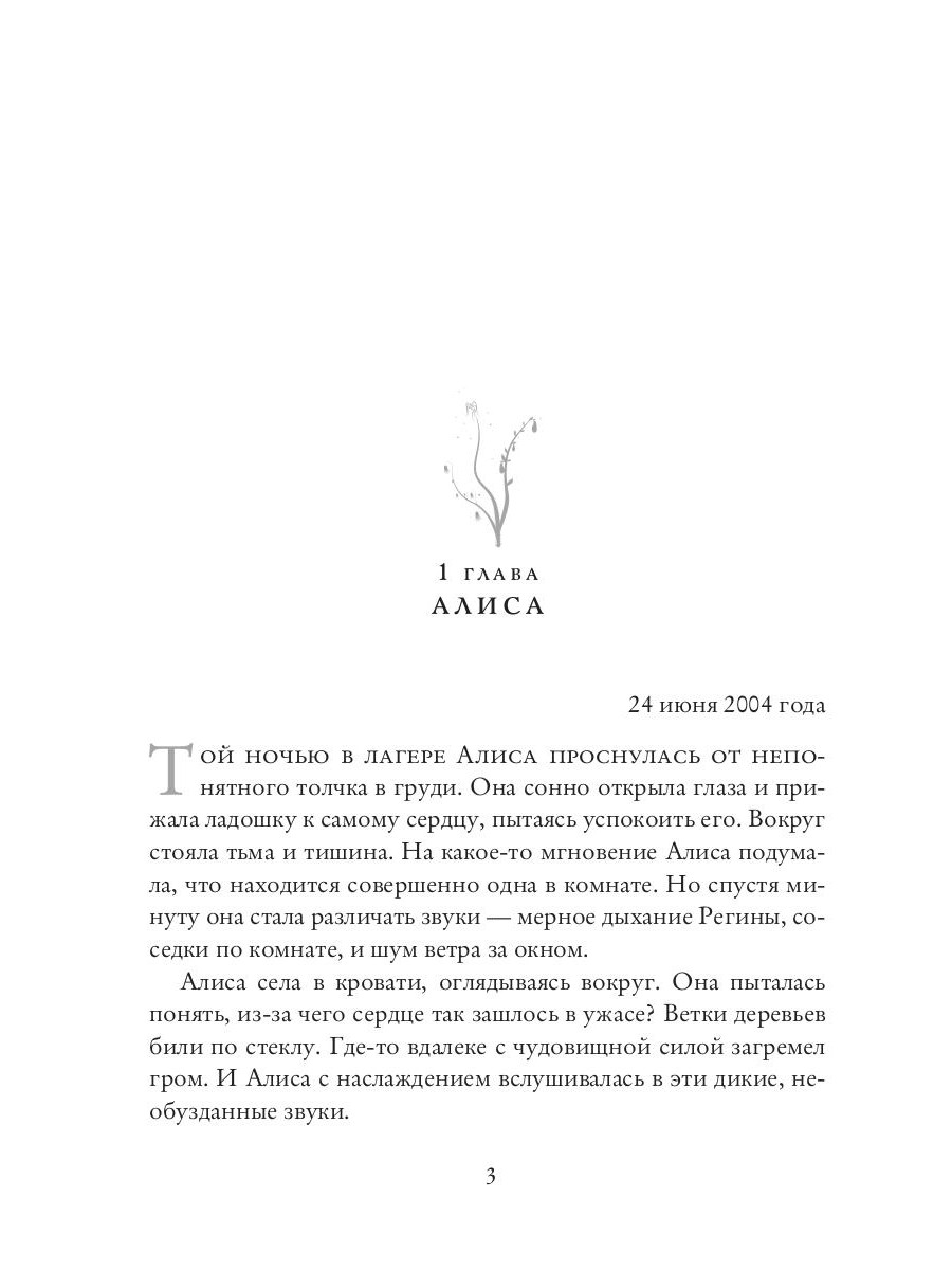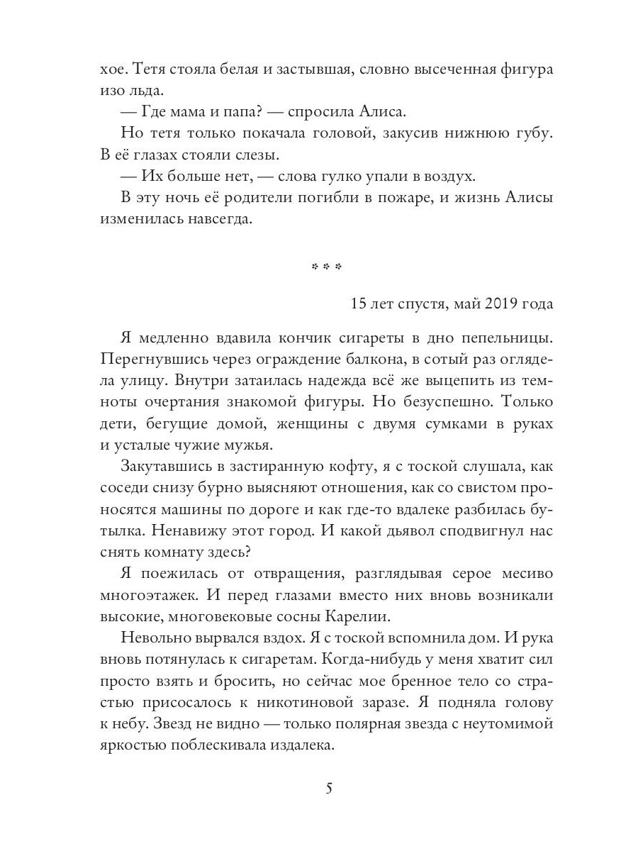 Вот уже пятнадцать лет Алису Белозерскую мучают вопросы о прошлом. Откуда на ее теле шрамы? Кто хотел убить её в детстве? Почему она ничего не помнит? И кто виновен в пожаре, унесшем жизни её отца и матери? В поисках ответов Алиса решает вернуться в Карелию, в семейный дом, в котором она потеряла всё. Вот только старые призраки не дадут ей так просто разобраться, где сон, где воспоминания, а где - правда.