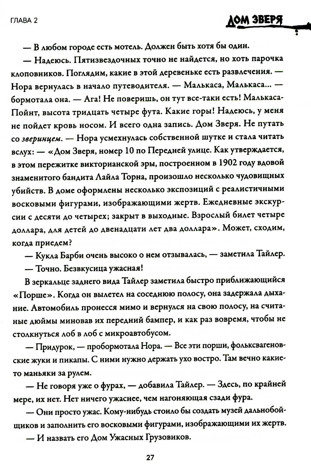 Второй роман культового цикла «Дом Зверя». С кошмарных событий первой книги миновал год, и чудовищные обитатели Дома истосковались по свежей крови. Что ж, новая группа героев уже вот-вот прибудет в маленький тихий городок на побережье. Писатель Горман Харди идет по горячим следам истории для еще одного бестселлера. И если половина того, что рассказывают о Малькаса-Пойнт и Доме Зверя, правда, то его новая книга обязательно станет сенсацией. Очаровательная библиотекарь Нора ищет свою любовь, ее друзей влечет дух приключений. Они все получат то, к чему стремились... если смогут пережить ночь в старинном проклятом особняке, где правят боль, смерть и ужас.| Издательство | Феникс |