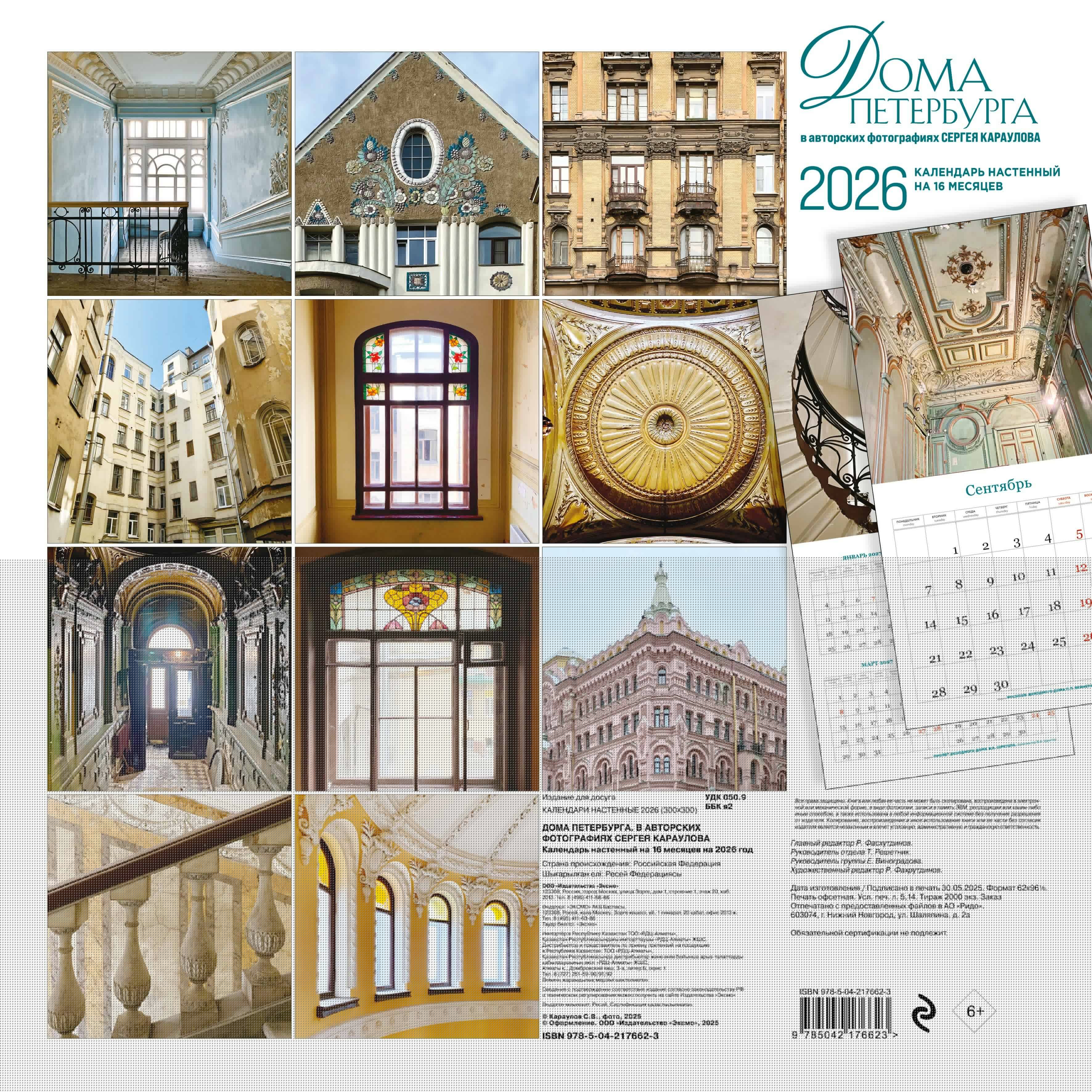 Аннотация: Дома Петербурга. В авторских фотографиях Сергея Караулова. Календарь настенный на 16 месяцев на 2026 год (300х300 мм)