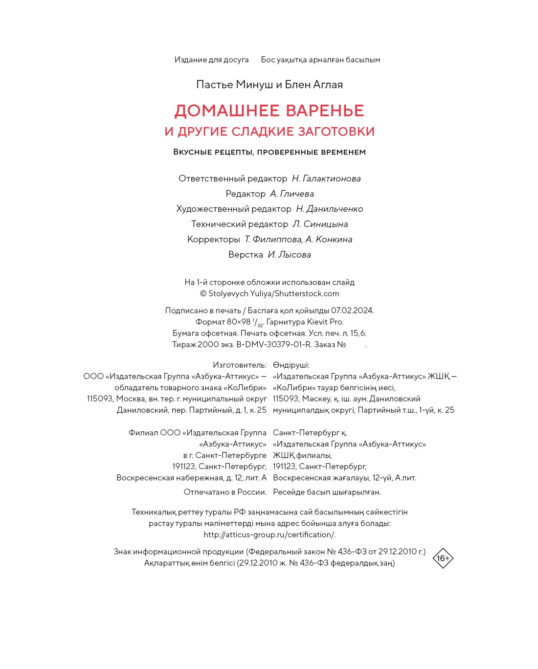 Варенье, желе и другие сладкие десерты длительного хранения можно приготовить практически из любых фруктов, ягод, а также из некоторых видов овощей и орехов. Познакомьтесь с тем, как это делают прославленные кулинарки - французские хозяйки, и вы откроете для себя новые сочетания вкусов и узнаете, как ярче раскрыть аромат привычных плодов и ягод. В книге содержится более 100 рецептов переработки как плодов из собственного сада и огорода (например, яблок, груш, смородины, клубники и многого другого), так и даров природы с ярких прилавков магазина или рынка (в их числе манго, гранат, банан, персик, апельсин и другие). Приводятся полезные советы по соблюдению технологии приготовления и хранения, даются ответы на часто возникающие вопросы, а также учтена сезонность. Настоящий мастер-класс для любителей сладких домашних заготовок! «Варка варенья - лучший способ немного задержать время, которое всегда проходит слишком быстро. Чтобы все получилось, следуйте простым рекомендациям, которые вы найдете на страницах этой книги. Очень важно учитывать сезонность: невозможно сделать что-то стоящее из тепличных плодов, никогда не видевших солнца. Не стоит маскировать вкус специями или ароматизаторами. Для хорошего варенья не нужны никакие ухищрения - только спелые фрукты и много любви». (Минуш Пастье и Аглая Блен)| Издательство | КоЛибри |