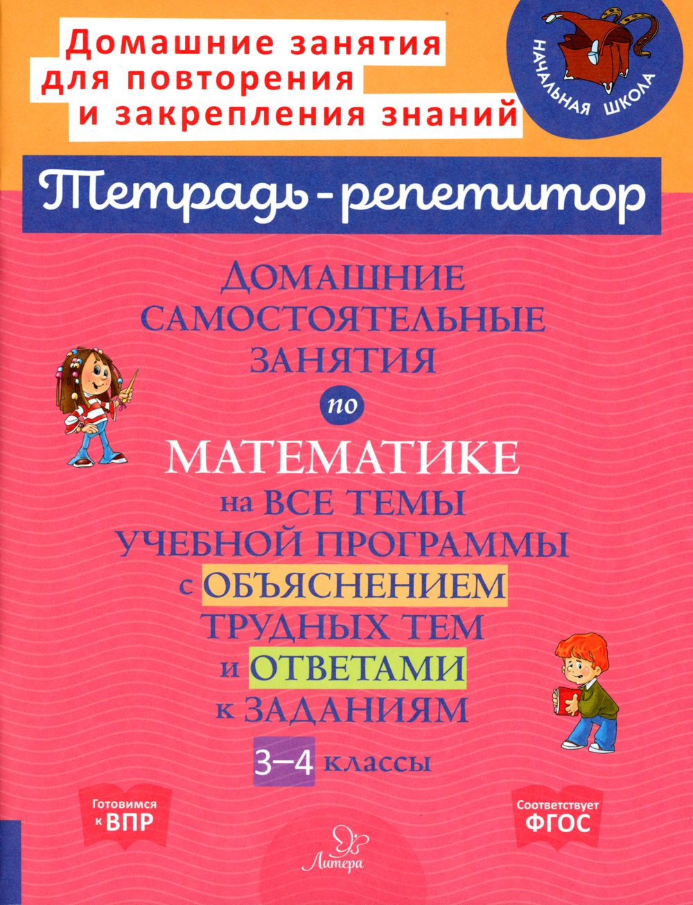 Домашние самостоятельные занятия по математике на все темы учебной программы с объяснением трудных тем и ответами к задания. 3-4 кл