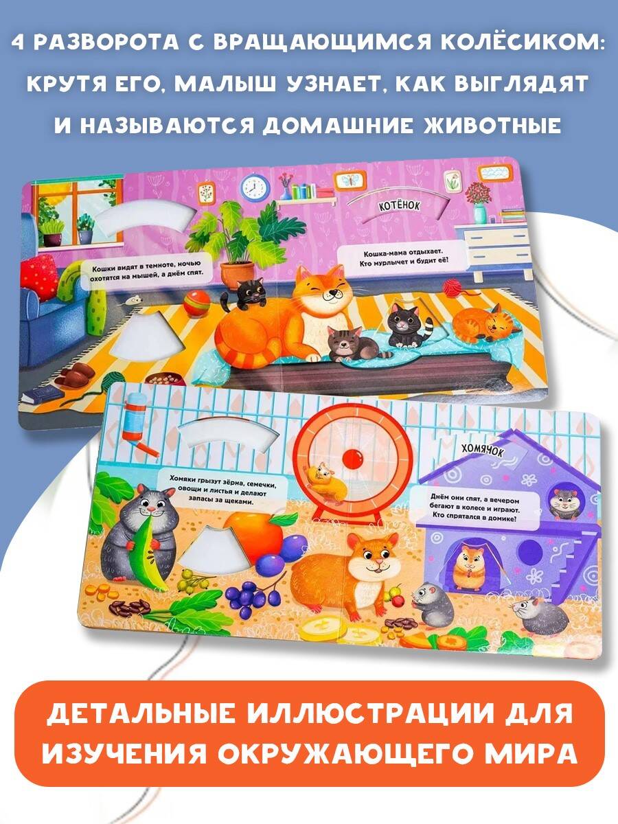 Покрути и узнай... какие у домашних животных милые малыши! Это книга первых знаний о домашних животных. В игровой форме, прокручивая колёсико, ребёнок сможет подобрать мамам животных их малышей и запомнит, как кто называется. С помощью этой книги у ребёнка развивается любознательность и воображение, мелкая моторика и логика.| Издательство | ИЗДАТЕЛЬСТВО "АСТ" |