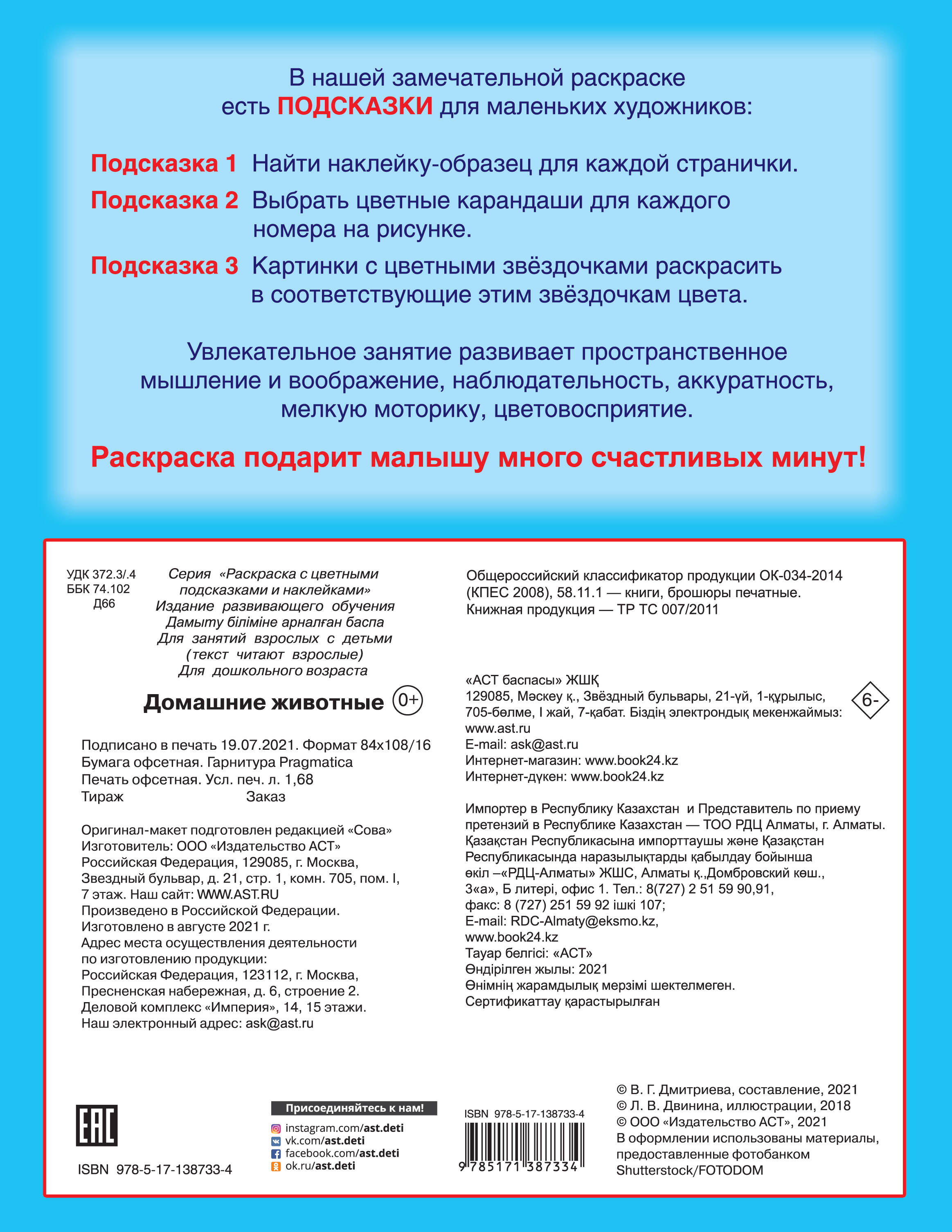 О чем эта книга Книга для развития детского изобразительного творчества - раскраска + коллекция красочных наклеек, домашних животных. Кому эта книга будет интересна Замечательная раскраска с наклейками-образцами - для всех, кому нравится рисовать, раскрашивать, узнавать новое. Каковы особенности этой книги • В книжке ребенку предлагается для каждой странички подобрать стикер и аккуратно раскрасить картинку по образцу. • Изобразительное творчество - одно из самых любимых и интересных занятий. Создавая яркие рисунки с помощью цветных карандашей, фломастеров, мелков, малыш подбирает цвета, запоминает названия домашних животных, учится трудиться и добиваться поставленного результата. • Короткие познавательные тексты для расширения кругозора - на каждой страничке. • Раскрашивать картинки, подбирать стикеры, придумывать истории по рисункам - не просто весело и интересно, но и очень полезно для разностороннего развития ребенка. • Малыш может раскрасить картинку по наклейке-образцу или придумать свое цветовое решение. Ведь главное в творчестве - свобода самовыражения, увлеченность интересным делом и позитивные эмоции. Выполняя интересные задания, играя с наклейками, раскрашивая картинки в этой книжке, ребёнок проведёт множество счастливых минут!| Издательство | ИЗДАТЕЛЬСТВО "АСТ" |