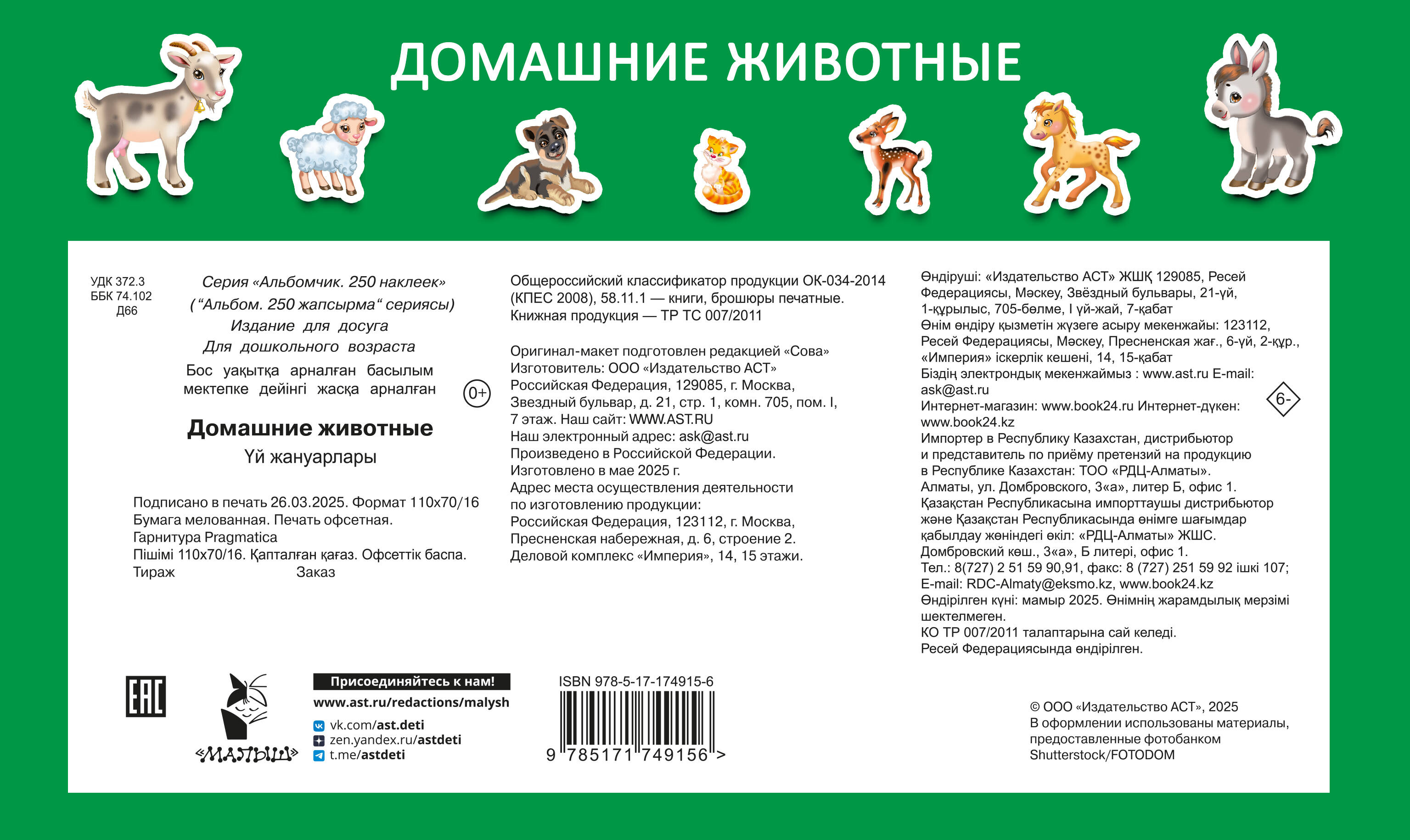 Серия «Альбомчик. 250 наклеек» - увлекательное развлечение для компании дружных и веселых малышей - а также их родителей. Самая полная коллекция наклеек для дошколят: живописные зелёные уголки, пруд, сады и огороды, речка, фермы с лугами и полями - кто где обитает? Альбом для создания хорошего настроения + отличная возможность потренировать мелкую моторику, воображение и координацию движения. Игры с наклейками тренирует мышление и интеллект, мелкую моторику, зрительное восприятие и координацию движений руки. Листать страницы и подбирать наклейки - здорово и интересно.| Издательство | Издательство "АСТ" |