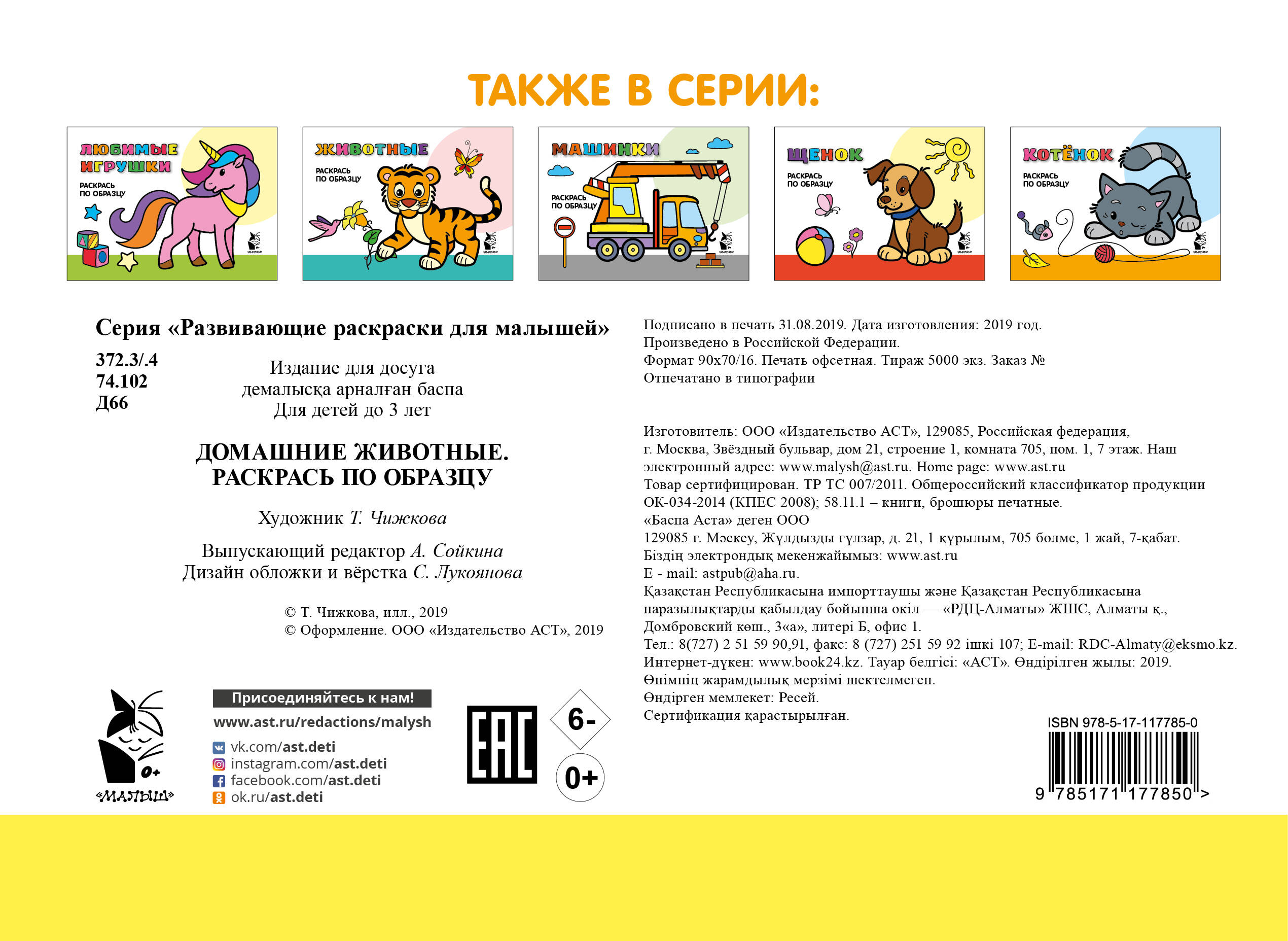 Каждый родитель знает, как непросто бывает занять ребенка в дороге или развеселить дома. «Развивающие раскраски для малышей» прекрасно справляются с этой задачей, а еще помогают развить усидчивость, художественный вкус и мелкую моторику. Яркие картинки-образцы научат подбирать цвета и расскажут об окружающем мире, а крупные детали очень удобно раскрашивать. Благодаря серии развивающих раскрасок ребенок насладится творчеством , разовьет образное мышление, мелкую моторику и художественный вкус, познакомится с окружающим миром.| Издательство | ИЗДАТЕЛЬСТВО "АСТ" |