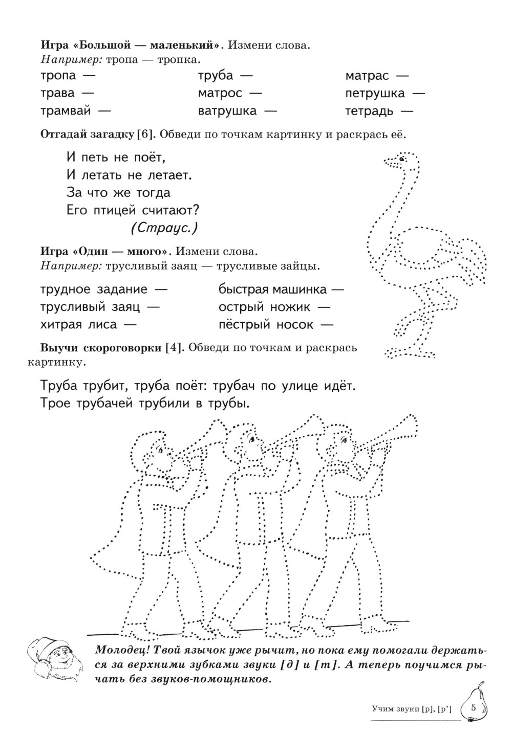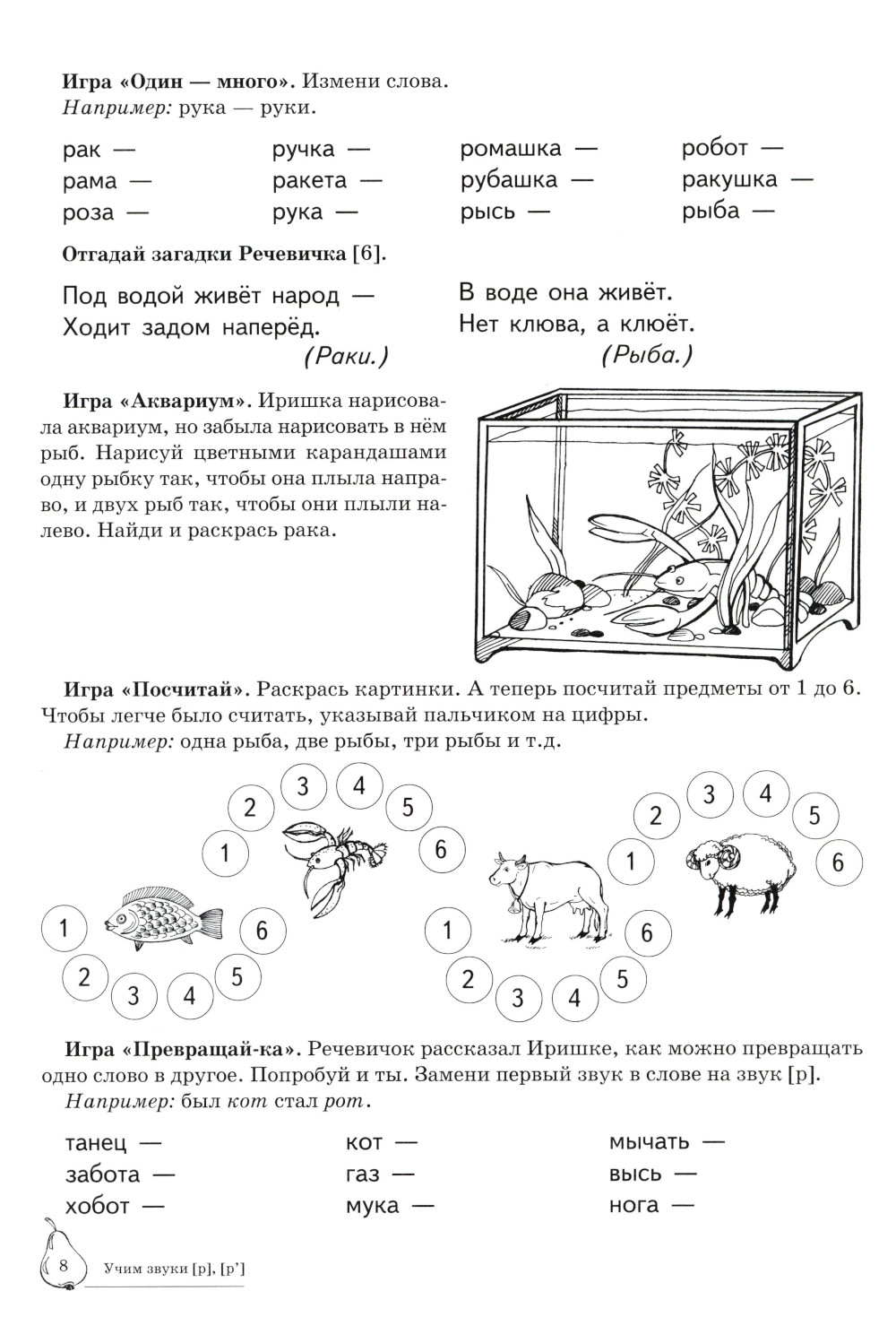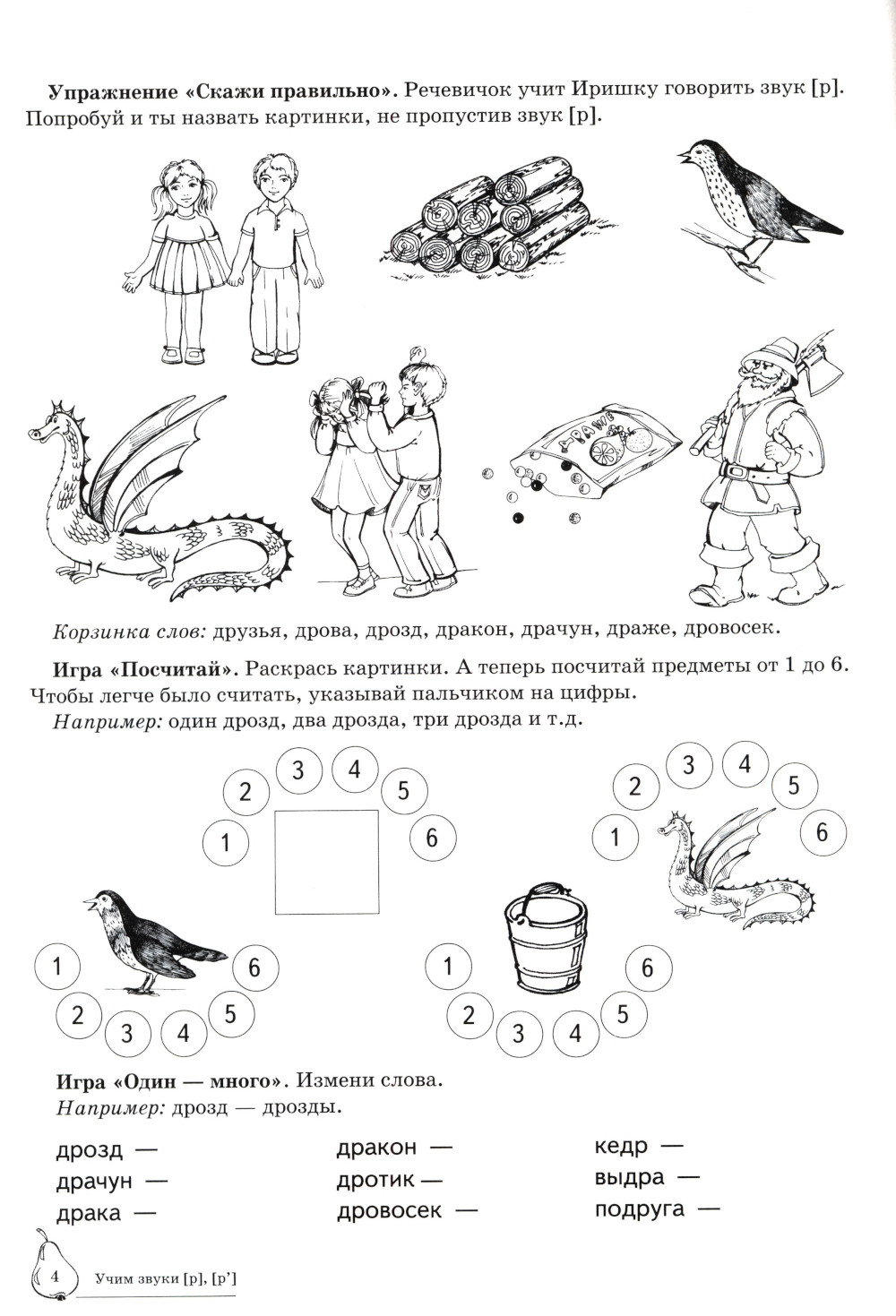 Вашему вниманию предлагается Домашняя логопедическая тетрадь для закрепления и различения звуков [р], [р']. Серия посвящена актуальной проблеме - введению в логопедическую работу обучающих игровых упражнений, с помощью которых решаются сразу несколько коррекционных задач: автоматизация и дифференциация звуков, работа над грамматическим строем языка, развитие связной речи, тренировка слуховой и зрительной памяти, подготовка руки к письму.| Издательство | Творческий центр Сфера |