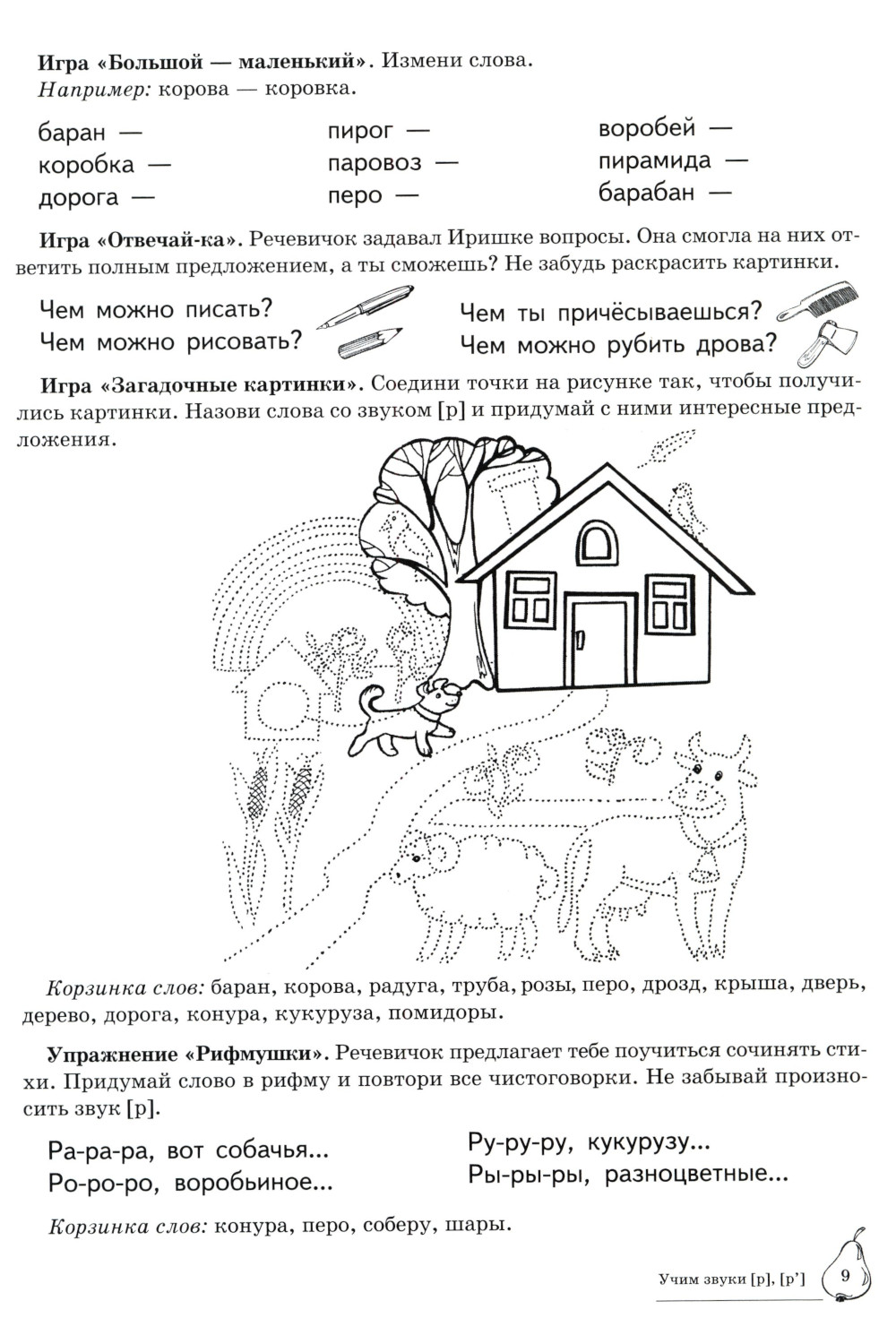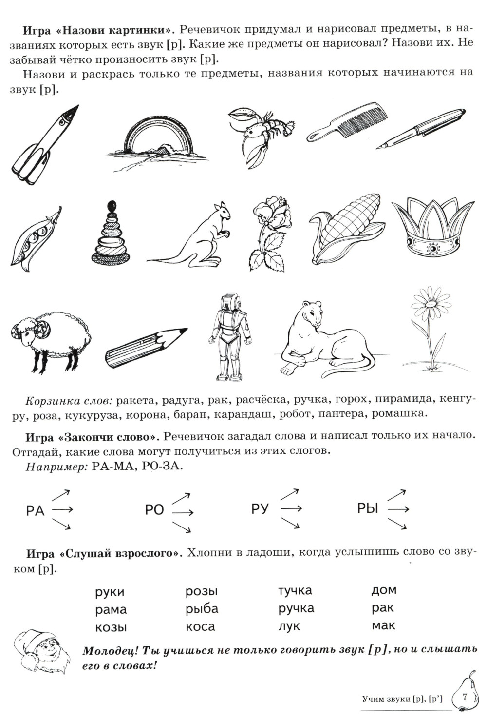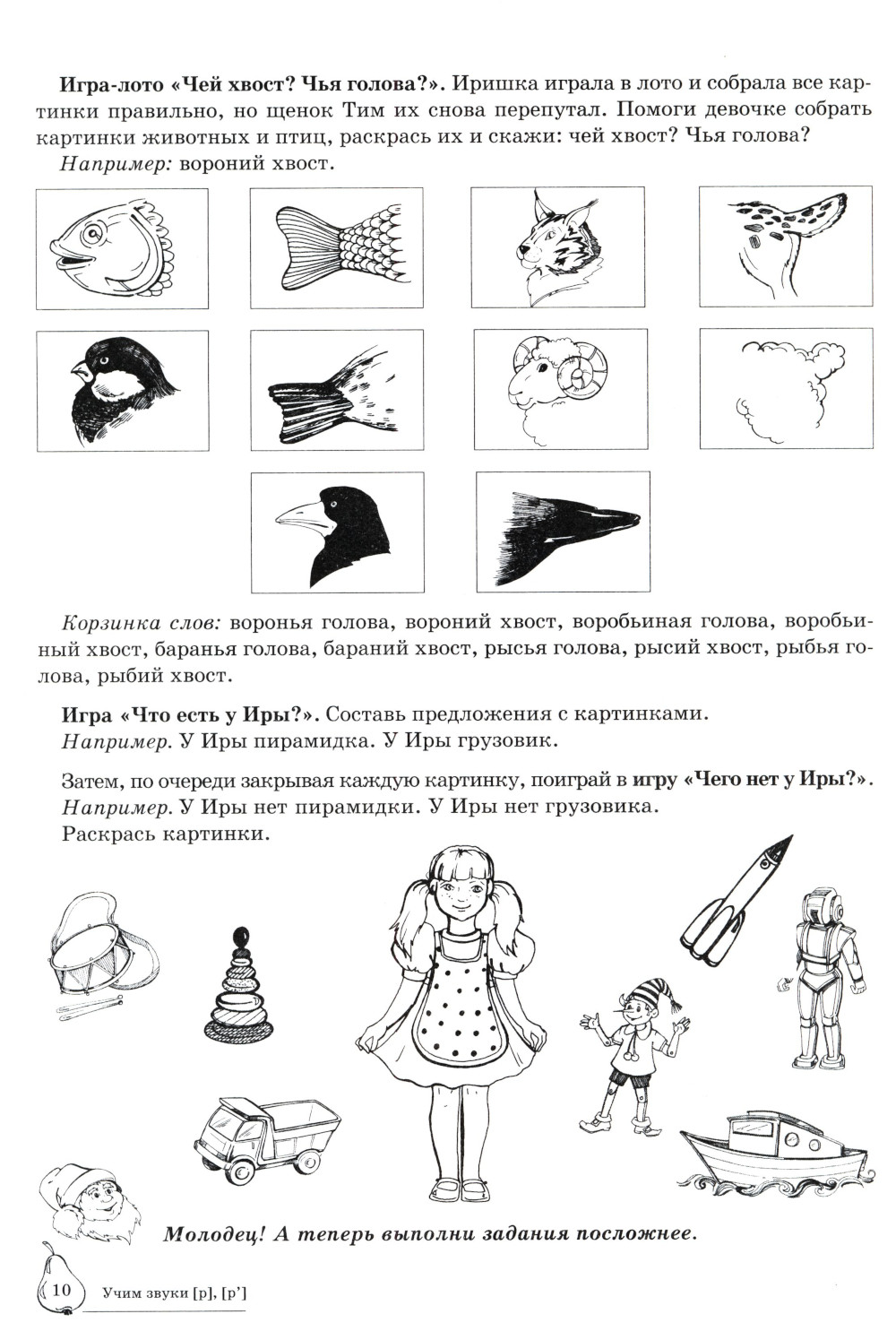 Вашему вниманию предлагается Домашняя логопедическая тетрадь для закрепления и различения звуков [р], [р']. Серия посвящена актуальной проблеме - введению в логопедическую работу обучающих игровых упражнений, с помощью которых решаются сразу несколько коррекционных задач: автоматизация и дифференциация звуков, работа над грамматическим строем языка, развитие связной речи, тренировка слуховой и зрительной памяти, подготовка руки к письму.| Издательство | Творческий центр Сфера |