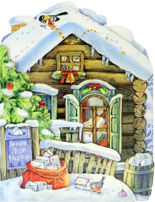Фигурные страницы из плотного картона выглядывают одна из-за другой и показывают разные уголки в доме и вокруг него. Листая книжку, читатель словно заглядывает в ярко украшенную комнату и потом выходит во дворик - здесь уже ждут олени, готовые везти подарки.