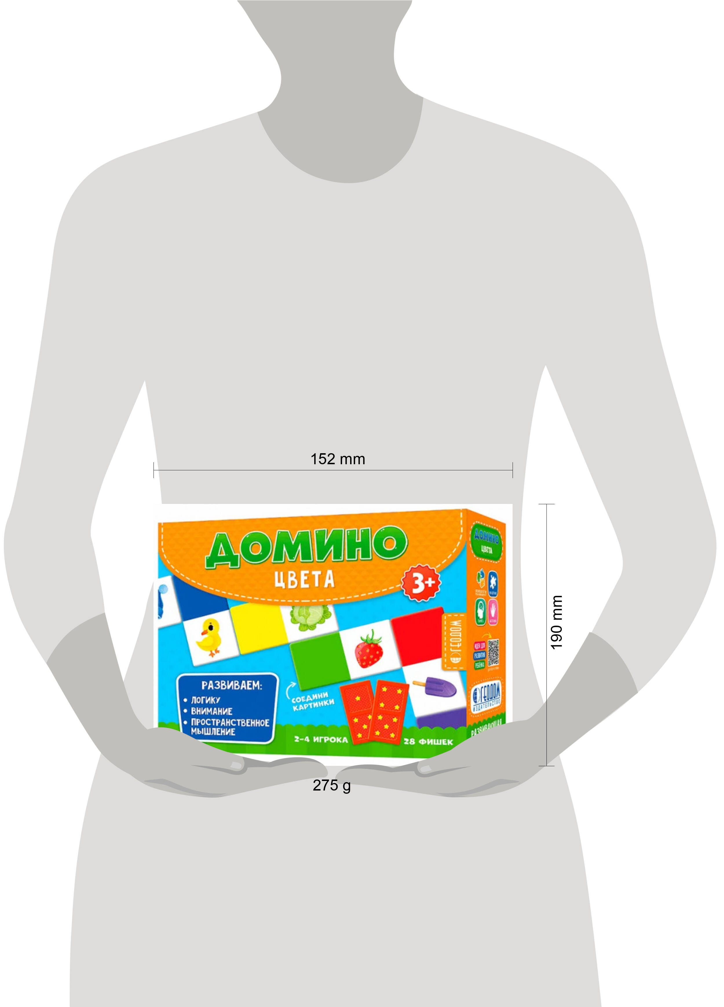 Детское домино "Цвета" расширяет кругозор малыша, развивает его память, внимательность, быстроту реакции и логическое мышление. Первый вариант игры: в игре "участвуют" цвета, которые нужно сочетать. Каждая фишка состоит из цвета и изображения не соответствующее ему. Цель игры - соотнести цвет с верным изображением предмета этого же цвета, соблюдая правила игры классического домино. Побеждает игрок, у которого раньше всех закончатся фишки. Второй вариант игры: выстраивается цепь фишек, соприкасающихся половинками с одинаковым количеством цветочков, обозначающим число очков (классическое домино). Играть под присмотром родителей.| Издательство | ГеоДом ООО |