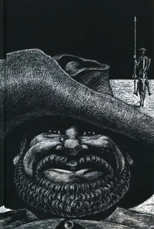 В конце 1960-х годов художник Савва Бродский взялся, как он сам выразился, за тысячную вариацию иллюстрирования романа и снова стал промывать великую книгу в своём сердце, как золотоносный песок (рисовать героев Сервантеса художник начинал ещё школьником). Что важно и необычайно ценно - Бродский не разделил мир, как принято, на дон кихотов и санчо панс. По его изобразительной версии, один Дон Кихот или один Санчо существовать не могут, как не может существовать только одна сторона медали. За экзальтированным рыцарем неотступно следует сметливый оруженосец: один олицетворяет идею, другой - её практическое использование.