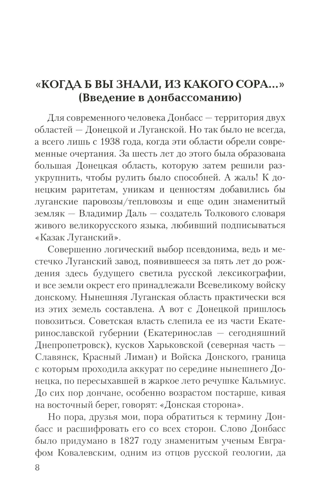 Роль Донбасса в жизни России, его значение очевидным образом недооценены. Даже сейчас, после многих лет страшного пролития русской крови в донецких степях, заметно, как остро не хватает всем нам знаний об этом русском крае, этом советском регионе. Писатель и журналист Олег Измайлов может быть назван одним из первопроходцев в «донбассоведении». В своей книге он приводит множество интересных фактов, оригинальных художественно-публицистических зарисовок, писем и документов. Перед читателем предстает многомерный и необычайно привлекательный образ Донбасса, когда-то справедливо названного «сердце России».