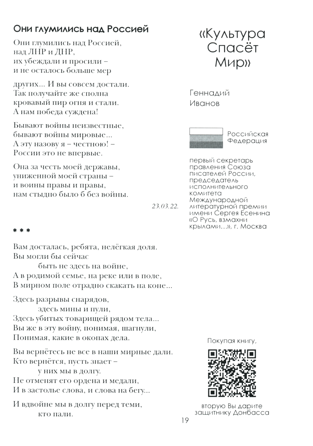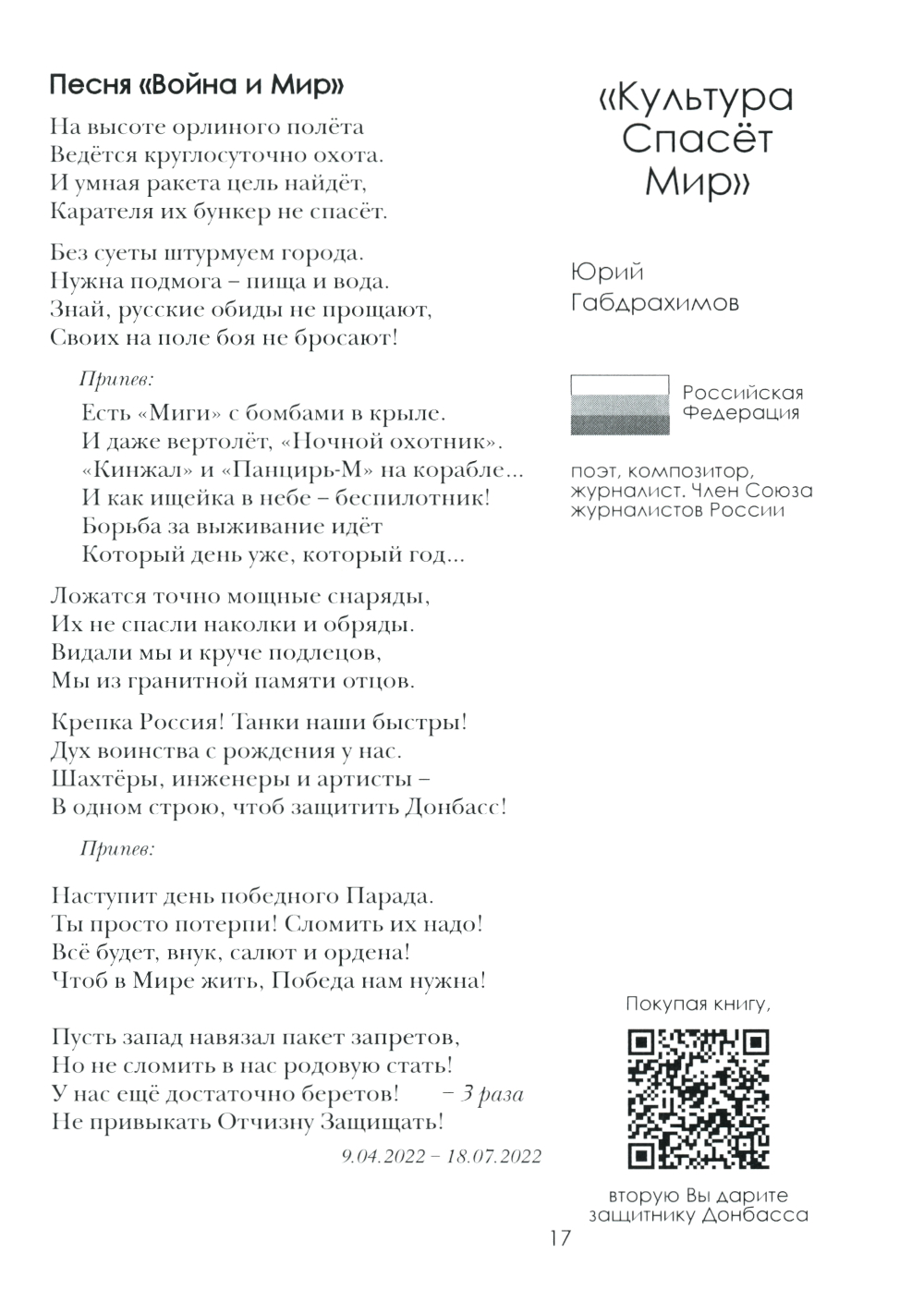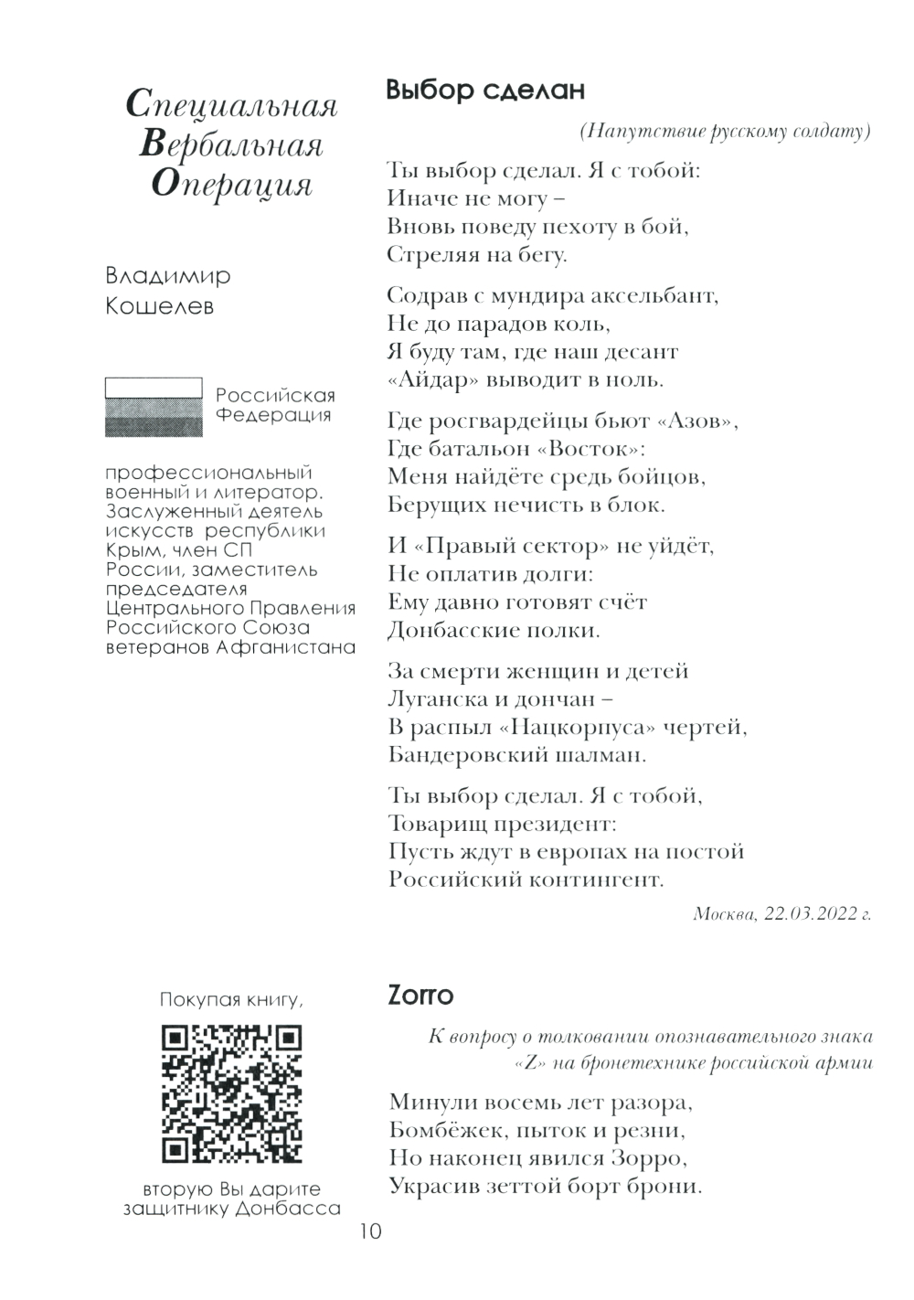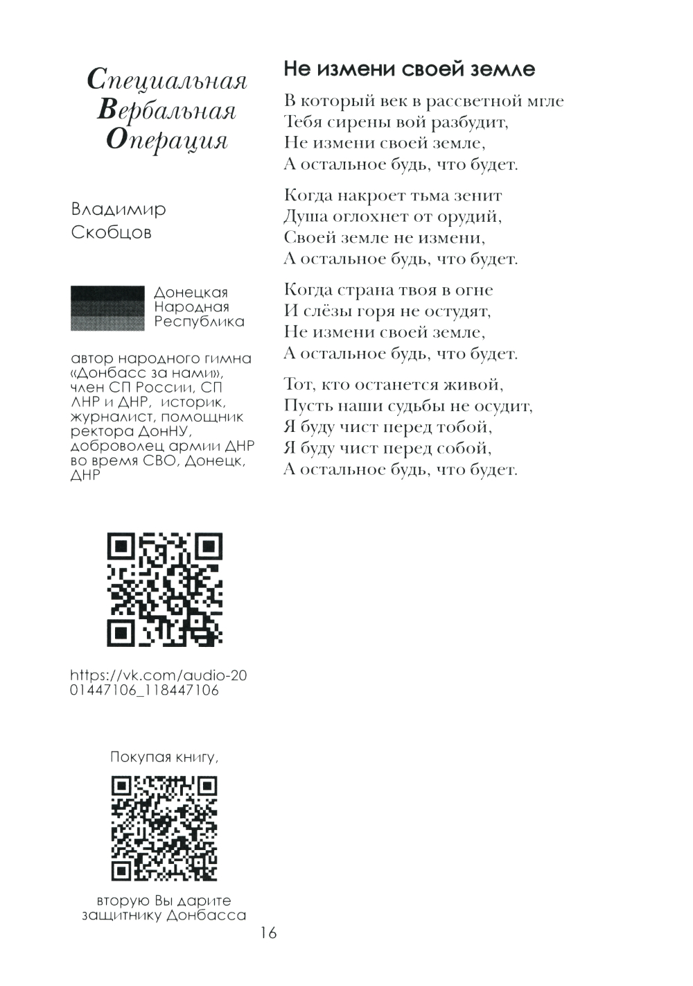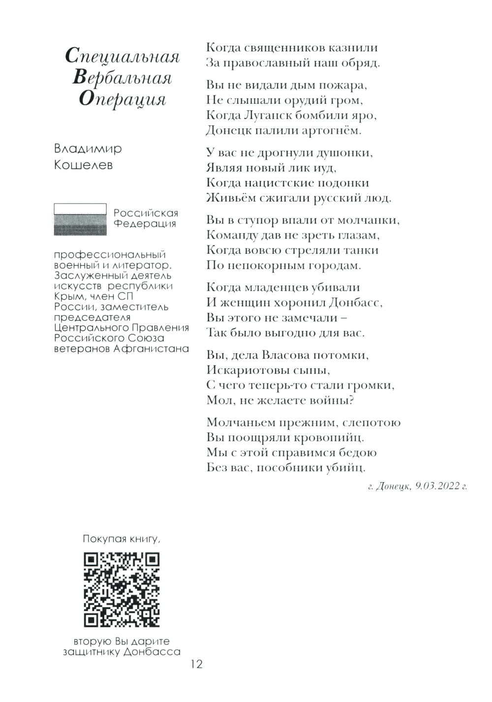 Книга «Донецк. Долгая дорога домой» (часть 2, ДНР) - это 4 том животрепещущей военными событиями серии книг: «Специальная Вербальная операция - Культура спасет мир» , родившаяся одновременно с началом Специальной Военной Операцией России освобождению народа Украины от гнёта неонацистов и США, развязавший войну на территории Украины между Коллективным Западом и Русским Миром, не желающих прекратить геноцид русского народа. Произведения вошедшие в сборник, э то СЛОВО современных русских писателей - призванное поддержать участников СВО, сражающихся за ОТЧИЗНУ, за РУССКИЙ МИР, за СПРАВЕДЛИВОСТЬ! Её авторы - все до единого - патриоты России. Среди них - резервисты, волонтеры, кадровые военные, которые не только словом, но и делом приближают нашу ПОБЕДУ. ЛНР, ДНР, НОВОРОССИЯ - это Россия! 4 том серии книг посвящен освобождению и вхождению в состав России Донецкой Народной Республики.| Издательство | ИД Академии Жуковского |