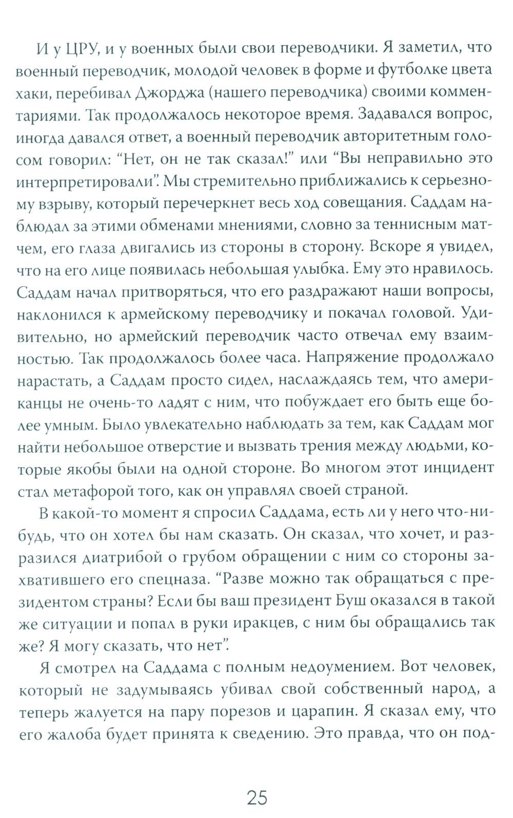 Книга Коэна Вульфа «Допрос президента: Встреча с Саддамом Хусейном» раскрывает не только личность Саддама Хусейна, но и скрытые механизмы американской политики, манипуляции информацией и последствия ошибок разведки. Вулф, первый американский агент, который провел допрос иракского президента, и утверждает, что США кардинально неправильно понимали Хусейна и его роль в регионе. Книга ставит под сомнение официальные версии событий, утверждая, что устранение Саддама создало вакуум власти, способствующий росту экстремизма и дестабилизации Ближнего Востока. Автор показывает, как Вашингтон, движимый ложными предпосылками и неверными интерпретациями, вмешивался в политические процессы в Ираке, что привело к катастрофическим последствиям. Этот труд поднимает вопросы о том, насколько глубоко искажаются факты в угоду политическим интересам и какой ценой это обходится миру. Сообщить о неточности| Издательство | Картина мира |