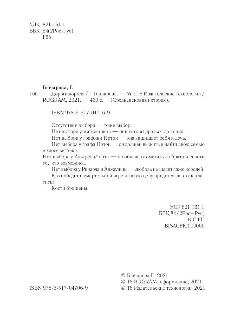 Отсутствие выбора - тоже выбор. Нет выбора у мятежников - они готовы драться до конца. Нет выбора у графини Иртон - она защищает себя и дочь. Нет выбора у графа Иртон - он должен выжить и найти свою семью в хаосе мятежа. Нет выбора у Альтреса Лорта - он обязан отомстить за брата и спасти то, что возможно… Нет выбора у Ричарда и Анжелины - любовь не щадит даже королей. Кто победит в смертельной игре и какую цену придется за это заплатить? Кости брошены.| Издательство | Т8 RUGRAM |