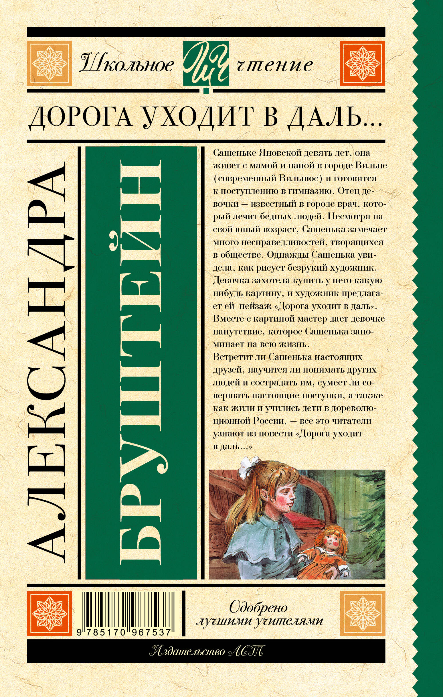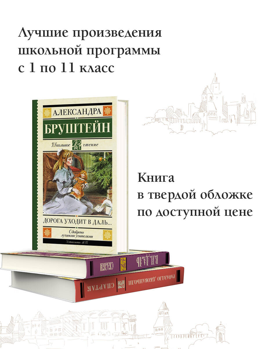 "Дорога уходит в даль…" - первая книга автобиографической трилогии ("В рассветный час", "Весна") Александры Бруштейн (1884-1968). В книге описываются детские и школьные годы юной Сашеньки Яновской, прототипом которой является автор. Детство и юность героини проходят в дореволюционной России сначала в провинциальном городке, а затем в Петербурге. Вечные темы не устаревают - именно поэтому этой книгой зачитывалось не одно поколение читателей.| Издательство | ИЗДАТЕЛЬСТВО "АСТ" |
