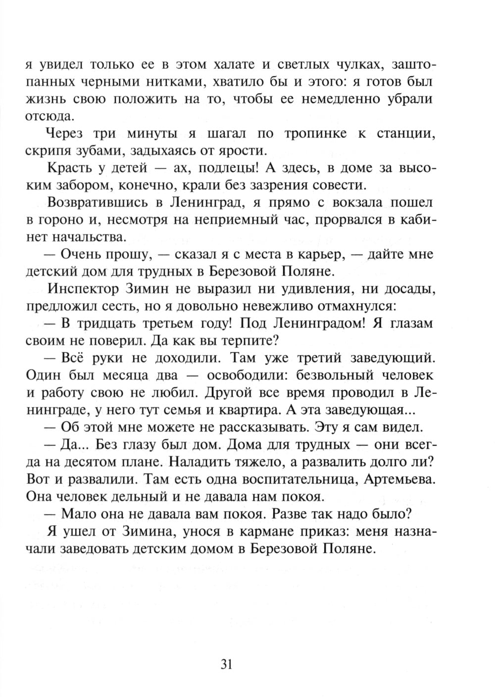 Фрида Вигдорова, журналистка и писательница, начинала свой путь с учительства, и поэтому не случайно и в ее статьях, и в ее книгах одной из главных стала тема детства, воспитания, педагогического труда. «Дорога в жизнь» - это повесть, открывающая трилогию («Дорога в жизнь», «Это мой дом», «Черниговка») о работе в детском доме Семена Карабанова и его жены Гали. Книги эти не документальные, но основаны они на реальном материале - педагогической деятельности Калабалиных. Калабалин - ученик А. С. Макаренко, прототип Карабанова из его книги «Педагогическая поэма». Вигдорова сохранила своему герою его «литературное» имя. В повести «Дорога в жизнь» рассказывается о начале самостоятельной работы Карабанова в Березовой Поляне - детском доме для трудных детей под Ленинградом. «Трудные» - это дети, хлебнувшие улицы, бывшие беспризорники - недоверчивые, строптивые и обиженные жизнью. Они требуют внимания и любви. Большинство детей, фигурирующих в повести, не списаны с натуры, а «выдуманы» писательницей, но воспринимаются, как живые. Для старшего школьного возраста.| Издательство | Детская литература |