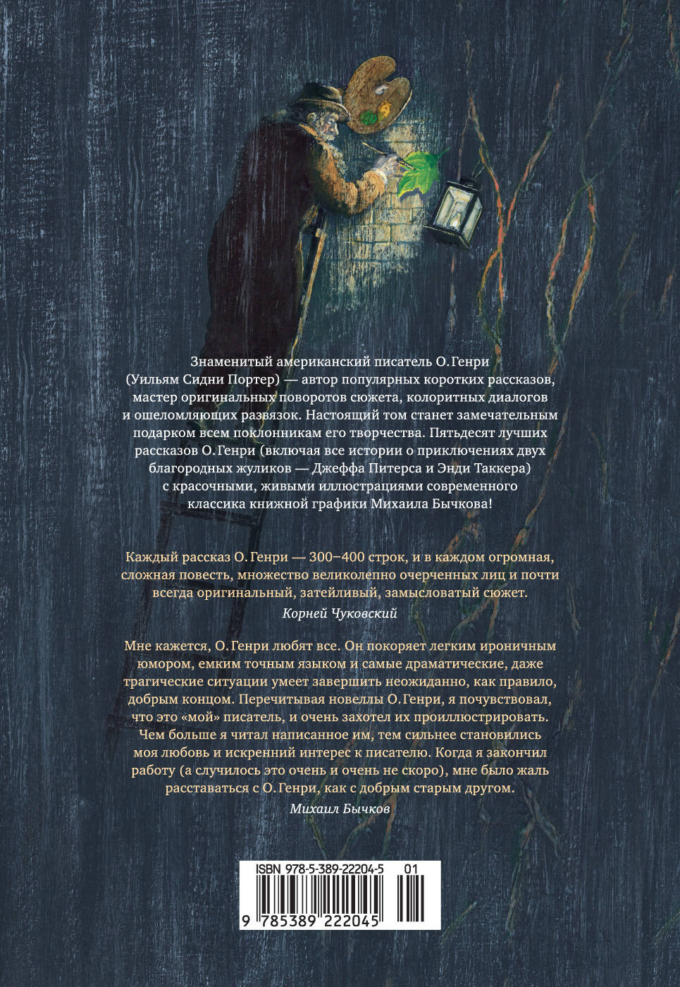Знаменитый американский писатель О. Генри (Уильям Сидни Портер) - автор популярных коротких рассказов, мастер оригинальных поворотов сюжета, колоритных диалогов и ошеломляющих развязок. Творческое наследие писателя составляют около трехсот новелл, представляющих собой нечто вроде юмористической энциклопедии американской жизни начала ХХ века. Впрочем, зарисовки О. Генри как нельзя лучше отвечают и тому, что мы наблюдаем в современной жизни. Необыкновенно занимательные и остроумные, рассказы О. Генри по-прежнему живая классика... Настоящий том станет замечательным подарком всем поклонникам творчества писателя. Пятьдесят лучших рассказов О. Генри (включая все истории о приключениях двух благородных жуликов - Джеффа Питерса и Энди Таккера) с красочными, живыми иллюстрациями современного классика книжной графики Михаила Бычкова!| Издательство | Азбука-Аттикус Издат.группа ООО |