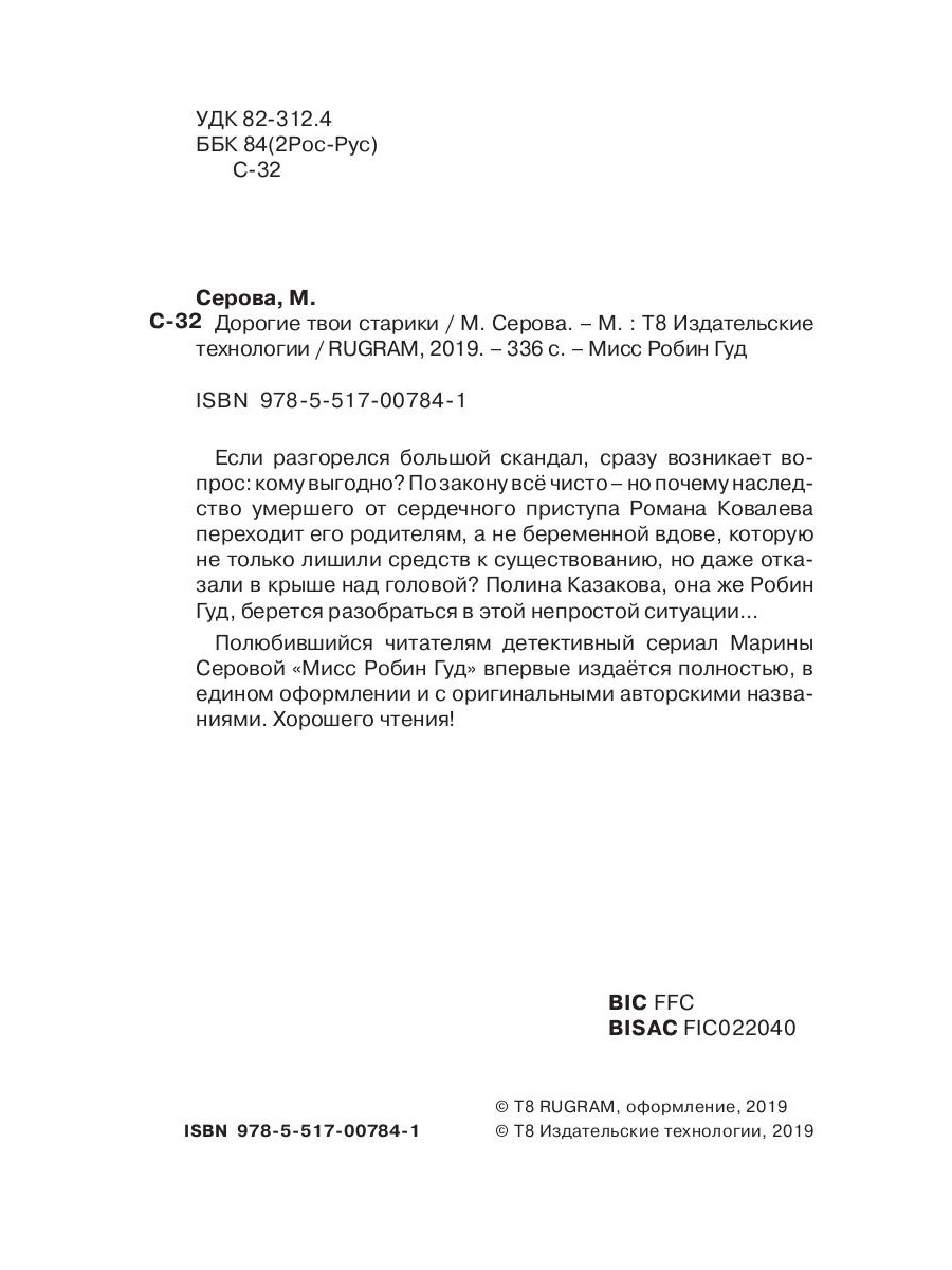 Если разгорелся большой скандал, сразу возникает вопрос: кому выгодно? По закону всё чисто - но почему наследство умершего от сердечного приступа Романа Ковалева переходит его родителям, а не беременной вдове, которую не только лишили средств к существованию, но даже отказали в крыше над головой? Полина Казакова, она же Робин Гуд, берется разобраться в этой непростой ситуации... Полюбившийся читателям детективный сериал Марины Серовой «Мисс Робин Гуд» впервые издаётся полностью, в едином оформлении и с оригинальными авторскими названиями. Хорошего чтения!| Издательство | Т8 RUGRAM |