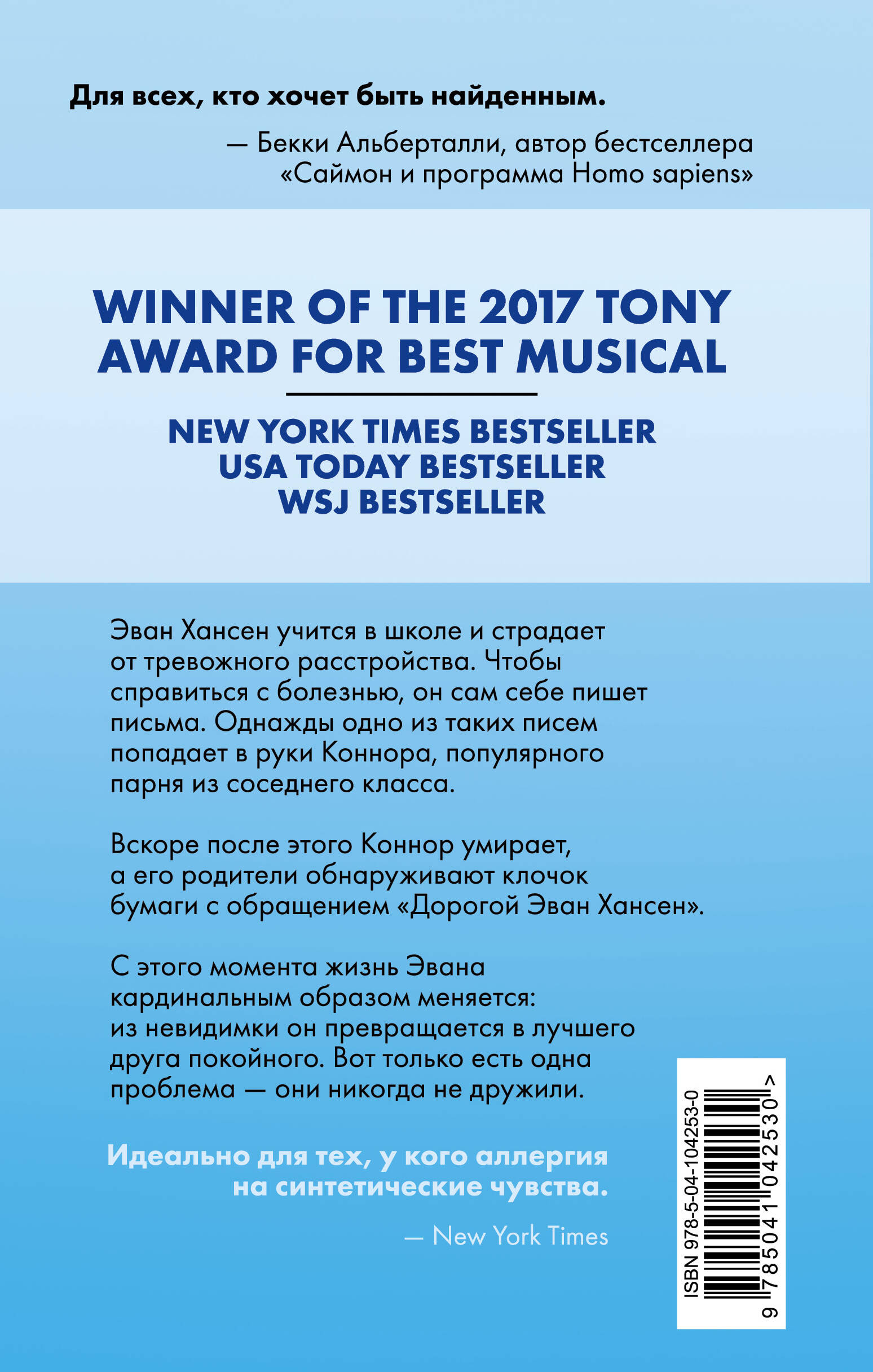 ДЛЯ ФАНАТОВ "ХОРОШО БЫТЬ ТИХОНЕЙ" СТИВЕНА ЧБОСКИ И "В ПОИСКАХ АЛЯСКИ" ДЖОНА ГРИНА. ДОЛГОЖДАННАЯ ЭКРАНИЗАЦИЯ ЛУЧШЕЙ ПОДРОСТКОВОЙ ДРАМЫ XXI ВЕКА. Бестселлер "Нью-Йорк Таймс", роман, легкий в основу бродвейского мюзикла, получившего престижнейшую премию "Тони". Сегодня в кино, в главных ролях: Джулиана Мур, Эми Адамс, Бен Платт. Режиссер Стивен Чбоски! Рекомендовано к чтению Бекки Альберталли, автором бестселлера "Саймон и программа Homo sapiens"| Издательство | ООО "Издательство "Эксмо" |