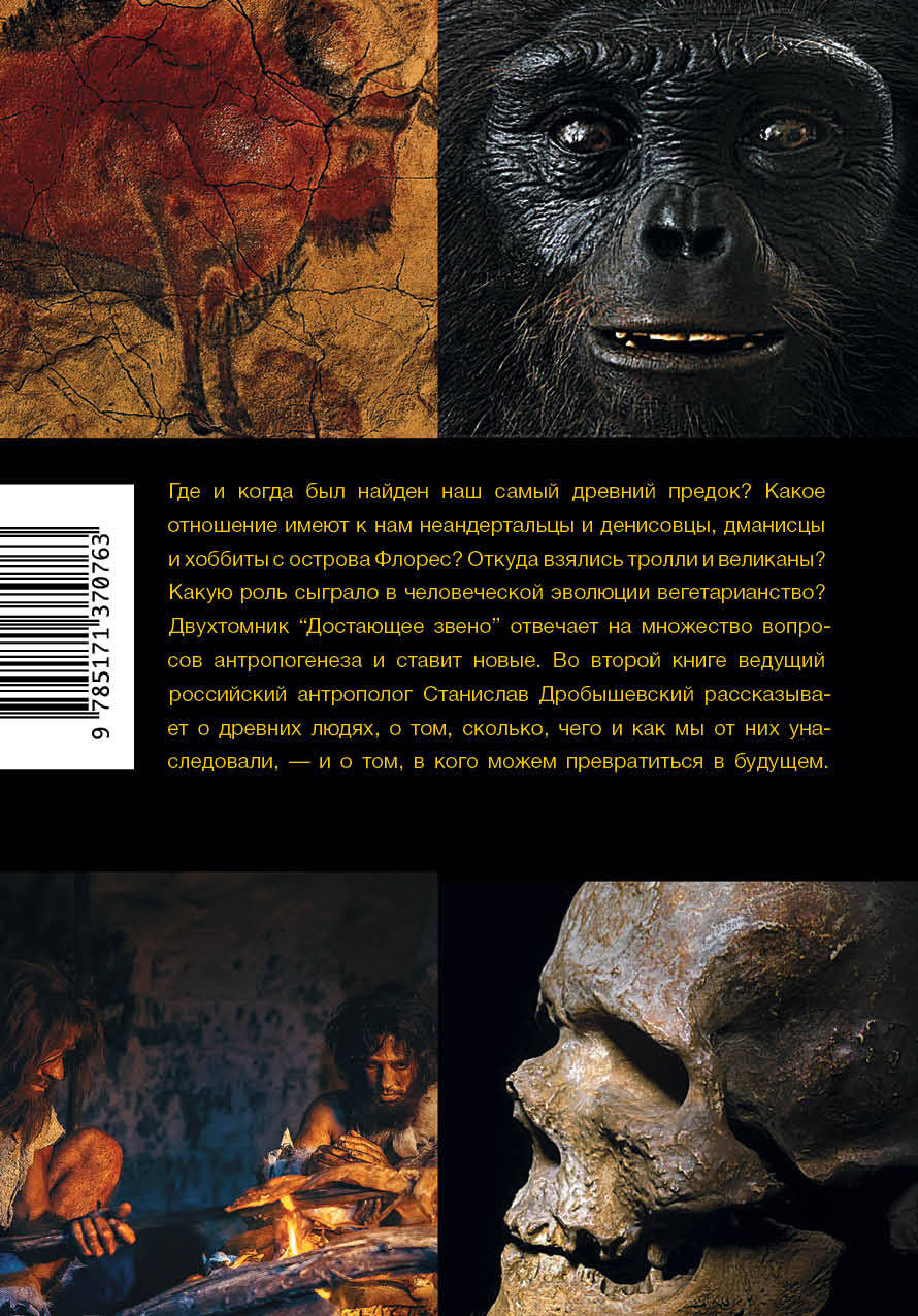 Кто был непосредственным предком человека? Как выглядит цепь, на конце которой находится Homo sapiens, и все ли ее звенья на месте? Почему некоторые находки оказываются не тем, чем кажутся поначалу? И почему разумными стали именно гоминиды, а не другие млекопитающие? "Достающее звено" - история происхождения человека в двух книгах - подробно и увлекательно отвечает на эти и другие животрепещущие вопросы о нашем прошлом. Ведущий российский антрополог, научный редактор портала "Антропогенез.ру" и блестящий лектор Станислав Дробышевский знает об этом, вероятно, больше, чем любой другой живущий потомок палеоантропов, и как никто другой умеет заразить интересом к современной, бурно развивающейся науке, имеющей прямое отношение к каждому из нас. Во второй книге "Достающего звена" речь идет о древних людях, о том, сколько, чего и как мы от них унаследовали, - и о том, в кого можем превратиться в будущем.| Издательство | ИЗДАТЕЛЬСТВО "АСТ" |
