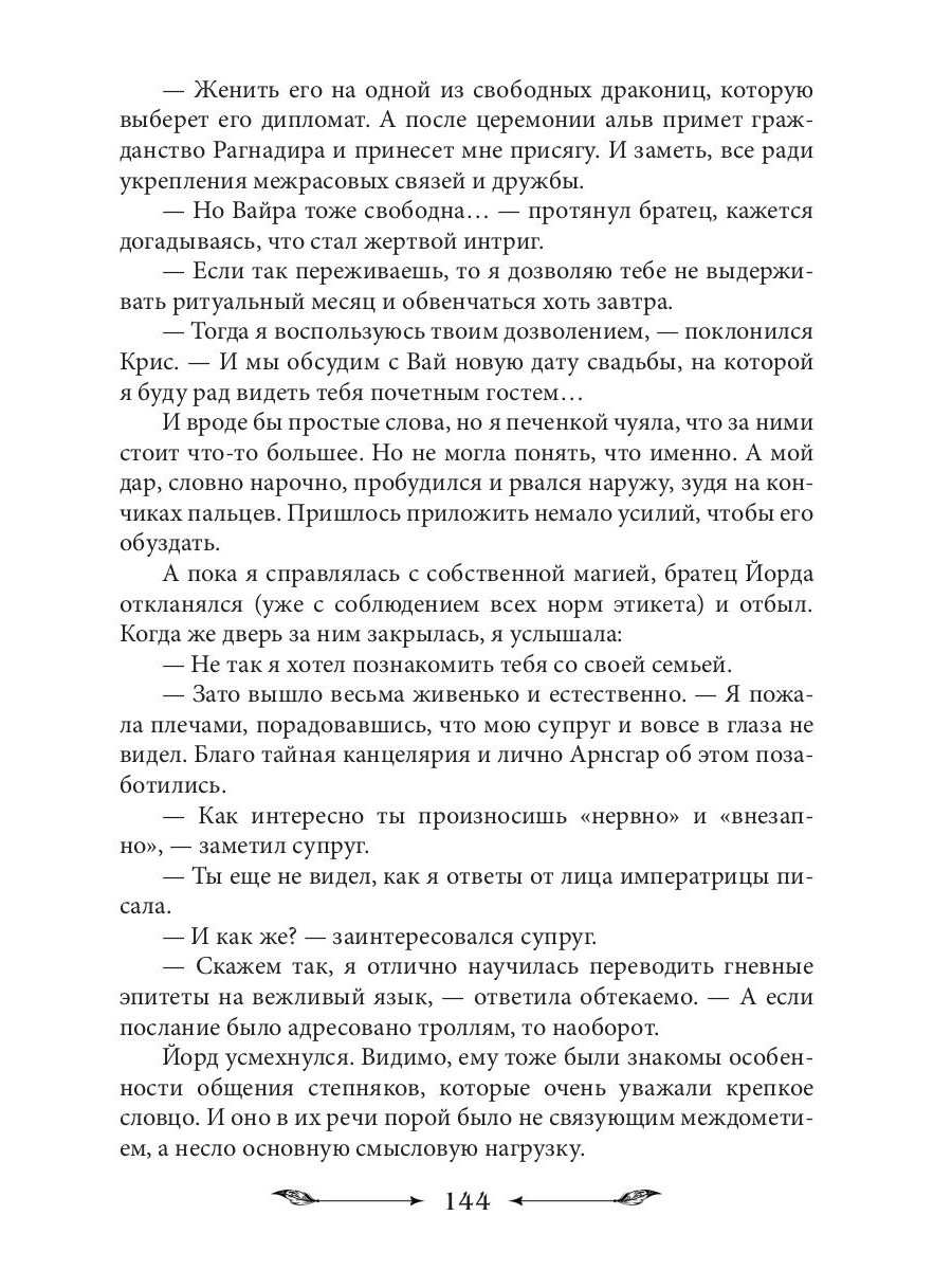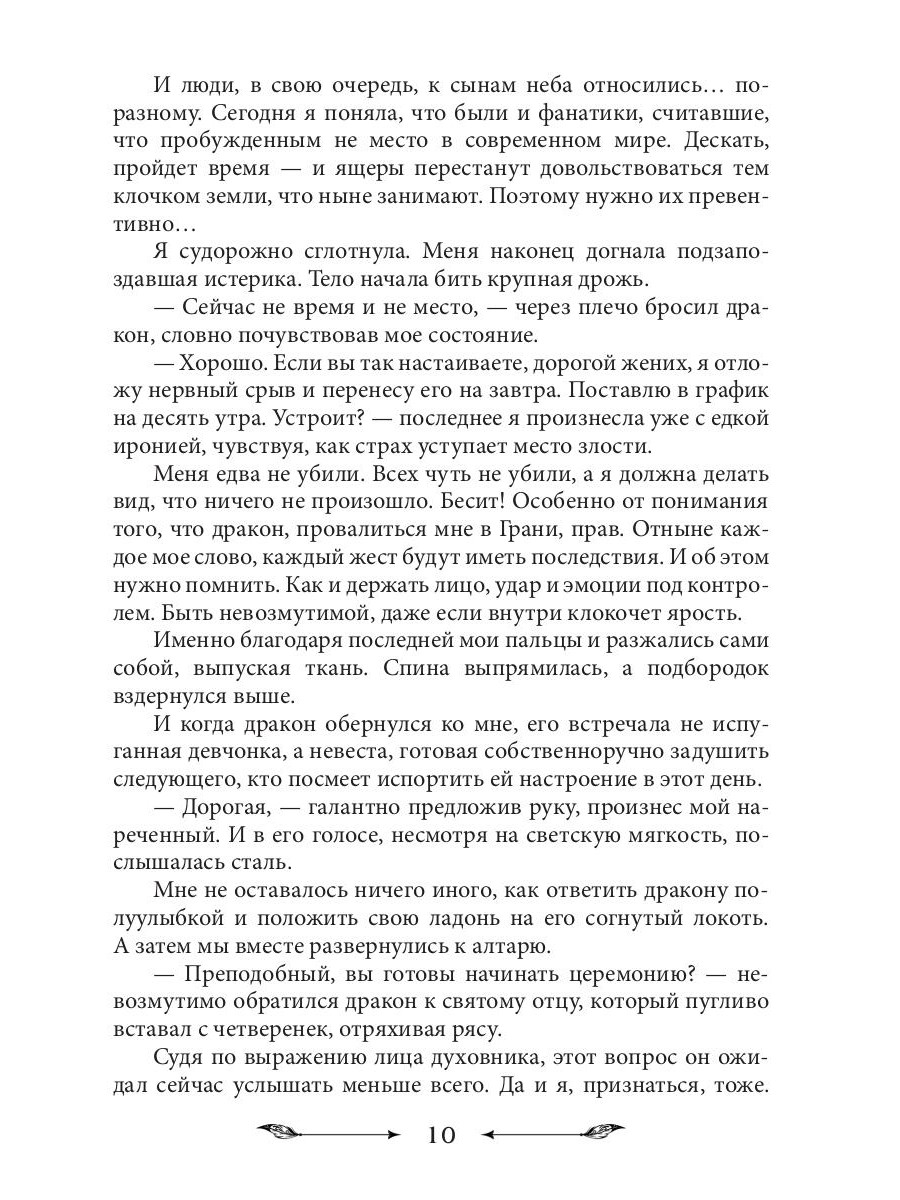 Если двум странам нужно заключить союз и скрепить его браком, а с обеих сторон одни принцы - не беда! Императрица может сказать, что ее фрейлины ей как дочери: выбирай, драконий князь, любую. Только не вот эту - она титулом не вышла. А у этой низкий дар - каких наследников она родит? И не эту. А вот ту... Да-да... Крайнюю в дальнем ряду девицу. Она согласна? Конечно! А если нет - у нас глава тайной канцелярии - отличная сваха! Любую замуж ушантажирует. В смысле уговорит. Все бы ничего, вот только той крайней в драконьем отборе оказалась я. И это была только первая моя проблема...| Издательство | Т8 RUGRAM |