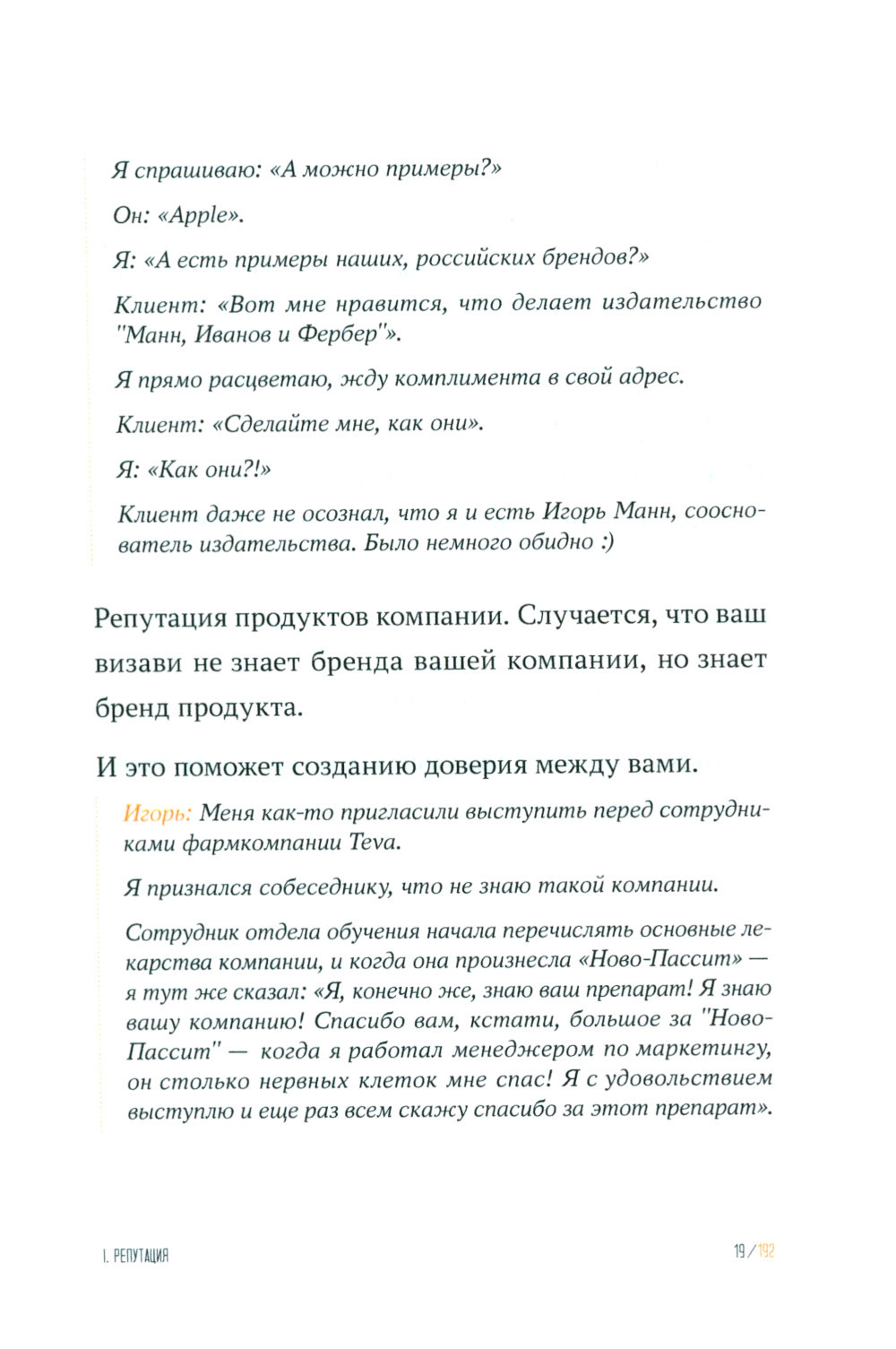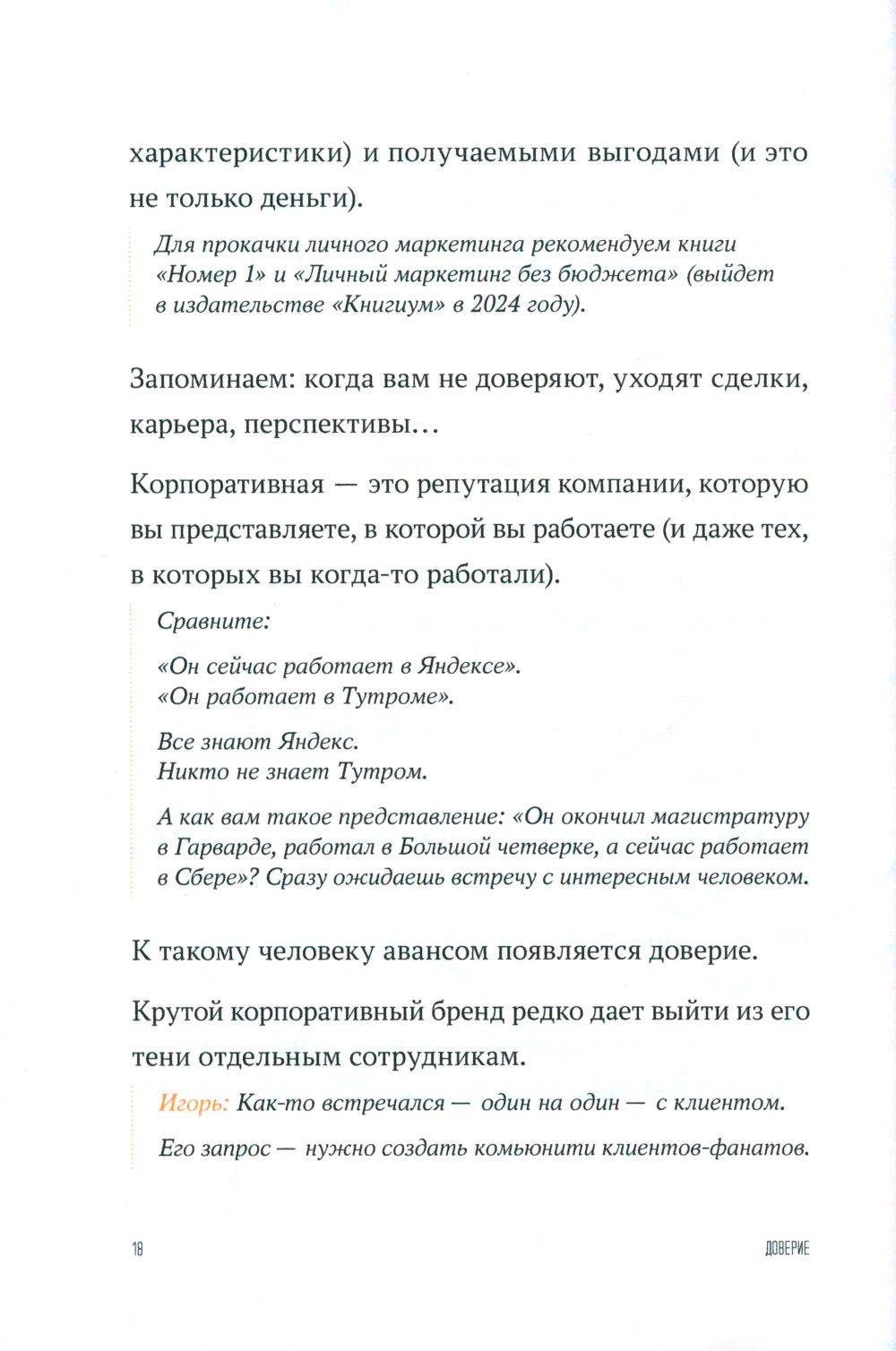 Авторы рассказывают, как создать, укрепить и нарастить доверие - основу всех отношений как в бизнесе, так и в жизни. Интуитивно мы все понимаем, как важно доверие - но мало кто умеет целенаправленно работать с ним. Вы узнаете, из каких шести элементов складывается доверие, и получите четкий алгоритм, как работать с каждым из них. Два элемента важны еще до первой встречи (с партнером, покупателем, коллегой, любимым - алгоритм универсален), а еще четыре - во время нее. В результате вместо эфемерных ощущений вы получаете ясную стратегию и тактику. Это первая книга, написанная российским маркетером №1 Игорем Манном в соавторстве с дочерью Елизаветой, которая в свои 20 лет уже запустила успешные бизнес-проекты и знает, как вызвать и укрепить доверие!| Издательство | СилаУма-Паблишер |