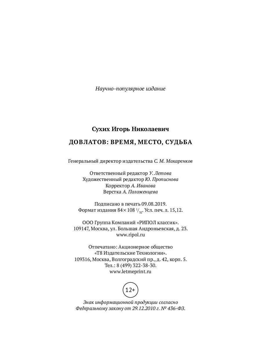 Книгу доктора филологических наук И.Н. Сухих о С.Д. Довлатове по праву можно назвать классикой. Она представляет особый опыт понимания наследия писателя, опыт медленного погружения в довлатовский текст, о результатах которого рассказано увлекательно и легко.| Издательство | Рипол Классик |