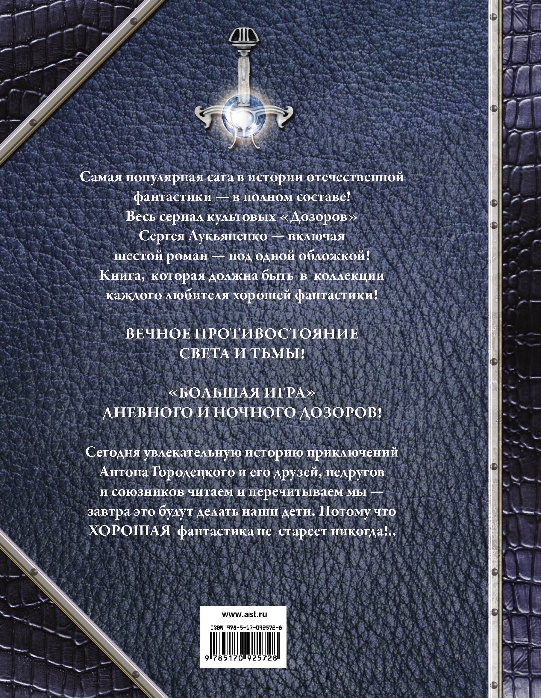 Самая популярная сага в истории отечественной фантастики - в полном составе! Весь сериал культовых "Дозоров" Сергея Лукьяненко - включая шестой роман - под одной обложкой! Книга, которая должна быть в коллекции каждого любителя хорошей фантастики! Сегодня увлекательную историю приключений Антона Городецкого и его друзей, недругов и союзников читаем и перечитываем мы - завтра это будут делать наши дети. Потому что ХОРОШАЯ фантастика не стареет никогда!..| Издательство | Издательство "АСТ" |