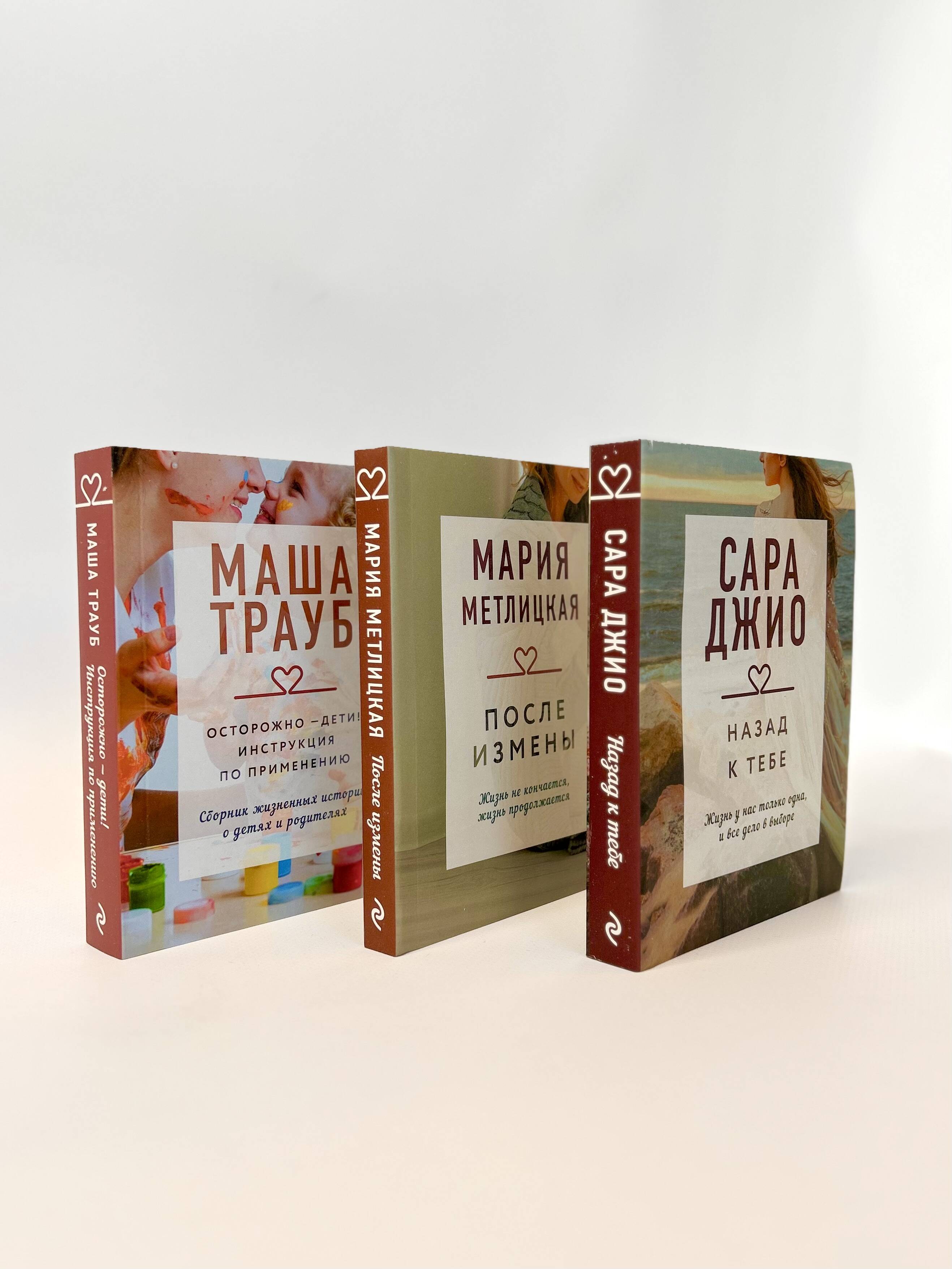 Романы Марии Метлицкой, Маши Трауб и Сары Джио в удобном и стильном оформлении. Комлект из трех книг. ПОСЛЕ ИЗМЕНЫ: Что может быть ужаснее предательства близкого человека? Того, кто был рядом много лет, с которым прошли через все трудности и испытания, вырастили ребенка? Как смириться с тем, что он полюбил другую? Ирина, героиня книги Марии Метлицкой, в первую очередь мучается от того, что не может простить мужа, не может начать все сначала, сделать вид, что ничего не было. Все вокруг говорят, что «поход налево» - дело житейское, что все мужчины изменяют, и многие ее подруги, соседки, приятельницы прошли через этот ад, кто-то с большими, кто-то с меньшими потерями. Но Ирина, как ни старается, не может примерить их опыт на себя. НАЗАД К ТЕБЕ: Когда-то общественность потрясла история Шарлотты, которая попала в кораблекрушение во время медового месяца и вернулась домой лишь спустя два года. Она провела много времени в открытом море, а затем на необитаемом острове в компании нелюдимого мужчины по имени Грэй, благодаря которому смогла выжить. Спустя много лет Шарлотта находит на берегу послание в бутылке. Это невероятно, но из него следует, что Грэй все еще ждет ее на острове, и, по его мнению, с момента их расставания прошли считаные дни… ОСТОРОЖНО - ДЕТИ! ИНСТРУКЦИЯ ПО ПРИМЕНЕНИЮ: Я очень люблю постановочные фотографии - где все красивые и улыбаются. Дочка - нежная красавица, сын - серьезный, умный мальчик. Я - такая ласковая мама с добрыми глазами. И только мне известно, что происходит за кадром. Как нежная красавица может заупрямиться, и ее с места не сдвинешь. Как сын начнет пробовать себя в риторике, стараясь довести меня до белого каления своими ироничными аргументами. И я - суматошная мать с безумным взором, которая не знает, как воспитывать детей. Эта книга для таких же мам, как я, а также пап, бабушек и дедушек, которые не знают, что делать с детьми. - Маша Трауб| Издательство | Эксмо |