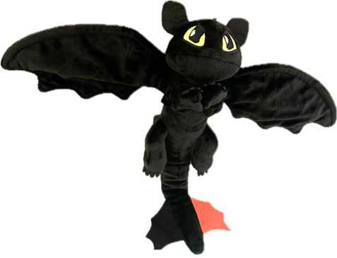 Взлетай в небо вместе с Беззубиком! Эта инновационная мягкая игрушка точно передает образ знаменитого дракона из «Как приручить дракона» - мягкий черный плюш с блестящими чешуйками, фетровые коготки и яркие зеленые вышитые глаза. Беззубик готов к полету с большими бархатистыми крыльями шириной 40 см, которые позволяют ему парить и перенести тебя на Остров Берк! Просто зафиксируй два пальца под его передними когтями, оттяни назад и отпусти - и Беззубик взмывает в воздух! Его мягкие крылья затем мягко складываются внутрь с щелчком, обнимая твою руку в уютных объятиях, когда приходит время для объятий. Независимо от того, день рождения это, праздник или любой другой повод, этот милый дракон станет замечательным подарком для поклонников «Как приручить дракона» и всех, кто любит семейные фильмы.