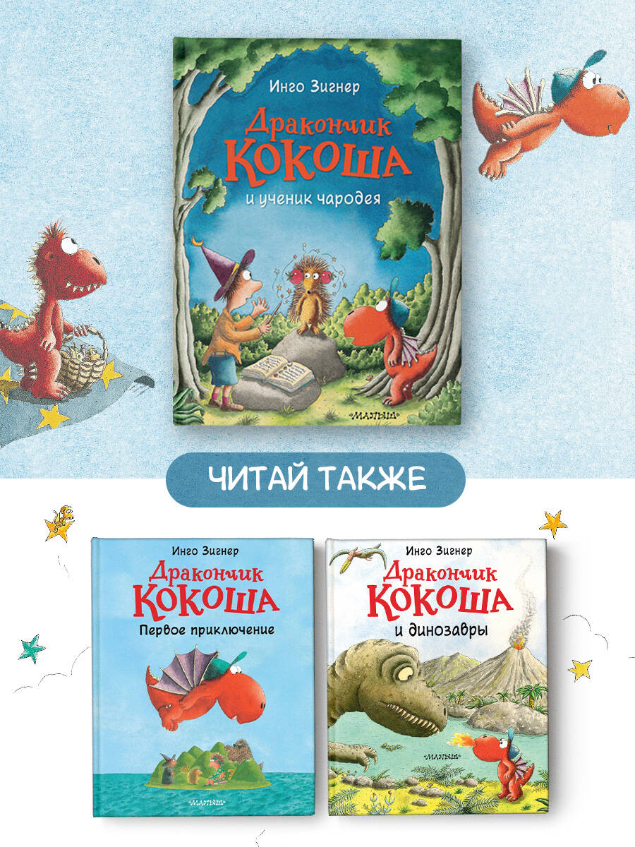Встречайте новое захватывающее приключение маленького дракончика Кокоши! В этой книге Кокоша и его друзья, Матильда и Оскар, подружатся с самым настоящим учеником чародея и даже научатся колдовать! А ещё снова встретятся с давним недругом Кокоши, колдуном по прозвищу Козлиная Борода, помешают его коварным планам и познакомятся с ужасным и опасным остромордым драконом. Вас ждут загадочные и забавные превращения, озорные чудеса и смешные заклинания. Скорее открывайте книгу и отправляйтесь в весёлое приключение! Инго Зигнер - знаменитый немецкий писатель и художник. Его книги о маленьком дракончике Кокоше, переведённые на множество языков мира, покоряют сердца маленьких читателей в самых разных уголках планеты. Писатель и художник удостоен различных премий в области детской литературы.| Издательство | АСТ |
