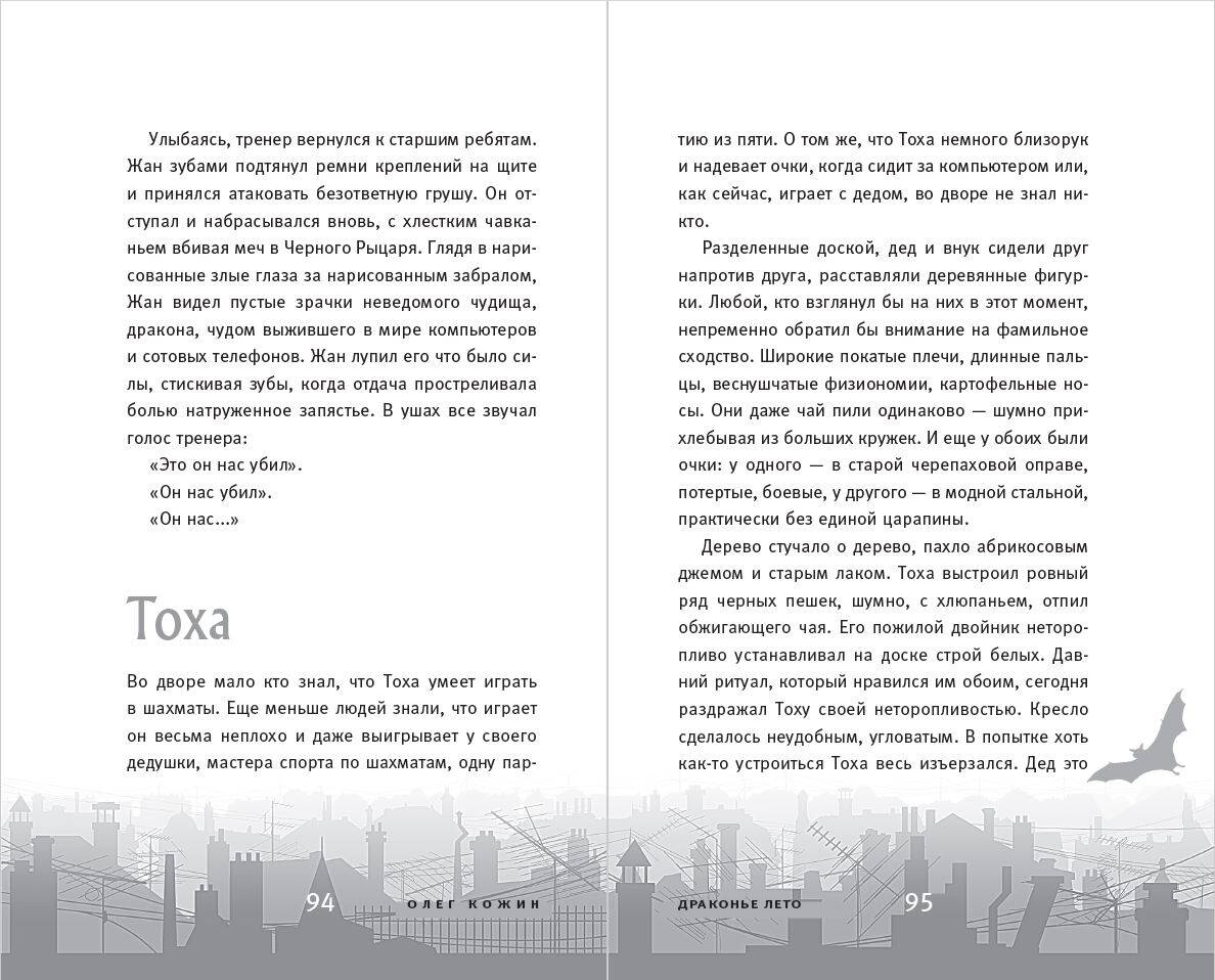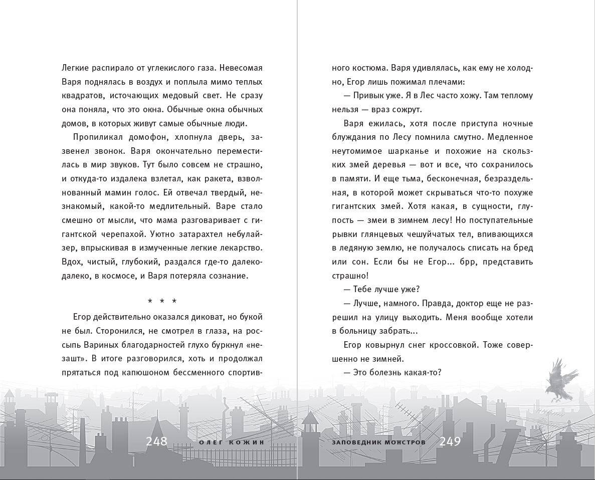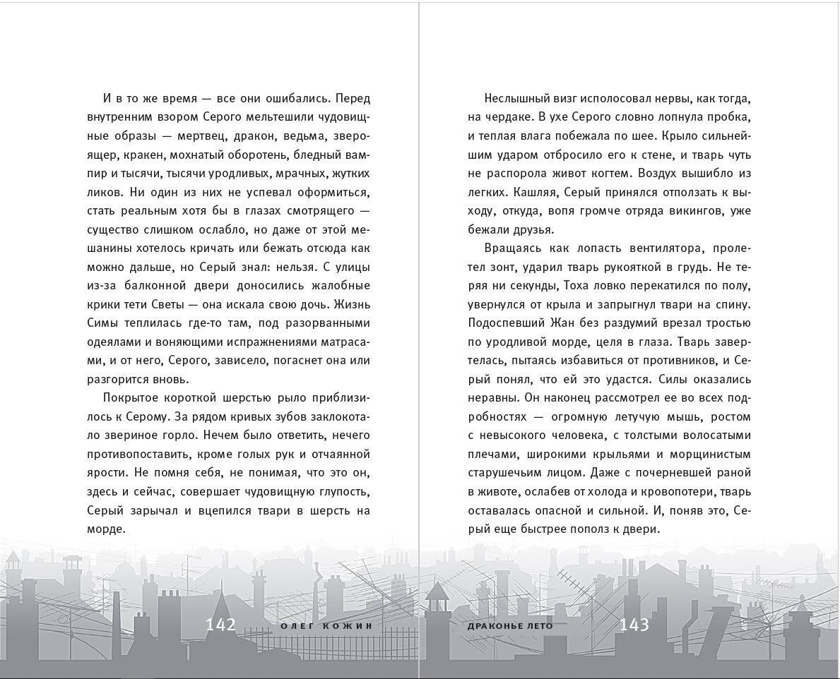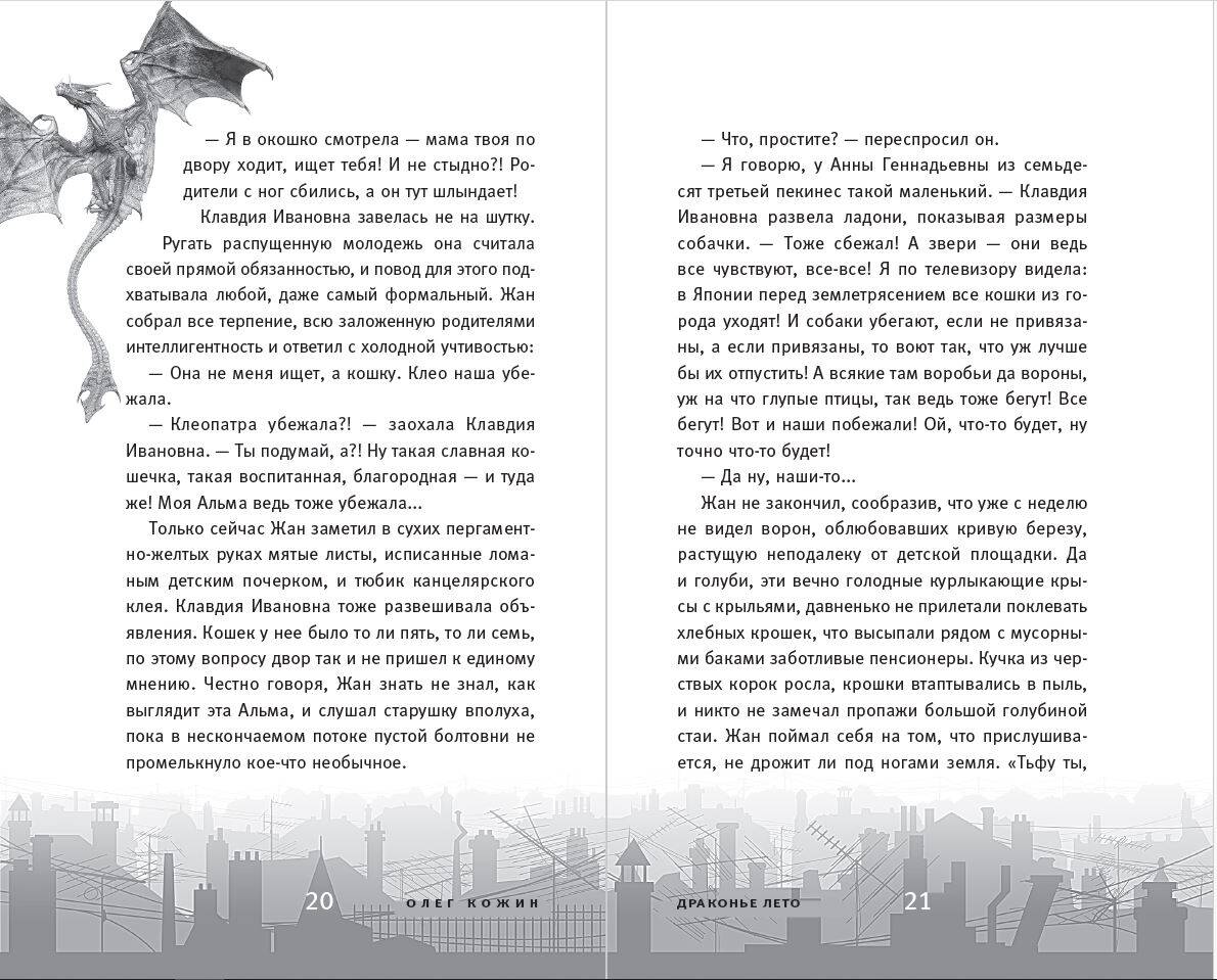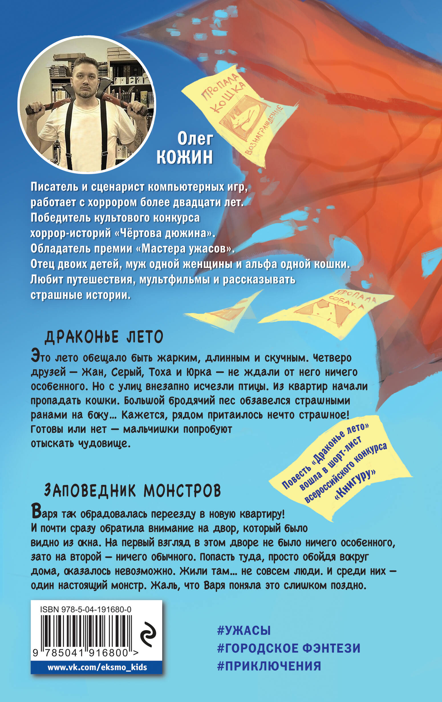 Мистика, ужасы и фэнтези для подростков! В этой книге - две повести мастера хоррора Олега Кожина о ребятах, живущих на улице Пушкина… и о странных и страшных чудесах. Для читателей от 12 лет и взрослых ценителей хоррора. «Драконье лето» Это лето обещало быть жарким, длинным и скучным. Четверо друзей - Жан, Серый, Тоха и Юрка - собирались провести его в городе. Кататься на великах, играть в компьютерные игры, есть мороженое и… совершенно не готовились ко встрече со смертельной опасностью. Но со двора и из парка исчезли птицы. Из квартир начали пропадать кошки. Большой и грозный бродячий пес обзавёлся страшными ранами на боку… Кажется, где-то рядом притаилось нечто страшное. Оно хочет есть, оно охотится. Готовы или нет - мальчишки попробуют отыскать чудовище. «Заповедник монстров» Варя так радовалась переезду в новую квартиру! Казалось, это место просто создано для них с мамой. Ни удивительно низкая цена, ни странный хозяин её не смущали. И пусть это первый этаж, зато у неё будет своя комната, и она сама выберет обои и занавески - тем более, старые шторы они сразу же выбросили. И за окном стал виден двор. На первый взгляд в нём не было ничего особенного, зато на второй - ничего обычного. Попасть туда, просто обойдя вокруг дома, оказалось невозможно. Жили там... не совсем люди. И среди них - один настоящий монстр. Жаль, что Варя поняла это слишком поздно. Олег Кожин - лауреат премий «Мастера ужасов», «Чёртова дюжина» и др. Повесть «Драконье лето» вошла в шорт-лист всероссийской премии «Книгуру». Автор живёт в Петрозаводске.| Издательство | ООО "Издательство "Эксмо" |