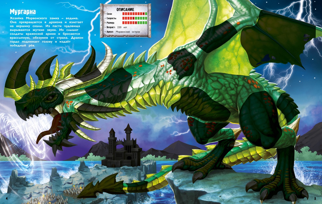 Добро пожаловать в удивительный мир драконов! Эти волшебные существа славятся своей чудовищной силой и невероятной скоростью. Они пьют лаву из вулканов, извергают молнии и пламя, а ещё очень любят золото. Драконов можно найти в ледяных пещерах, густых лесах и тёмных морских водах. Дополни каждое изображение яркими наклейками и узнай, как выглядят таинственные создания. Читаем и играем! Развиваем внимание, воображение, мелкую моторику и художественный вкус.| Издательство | Махаон |