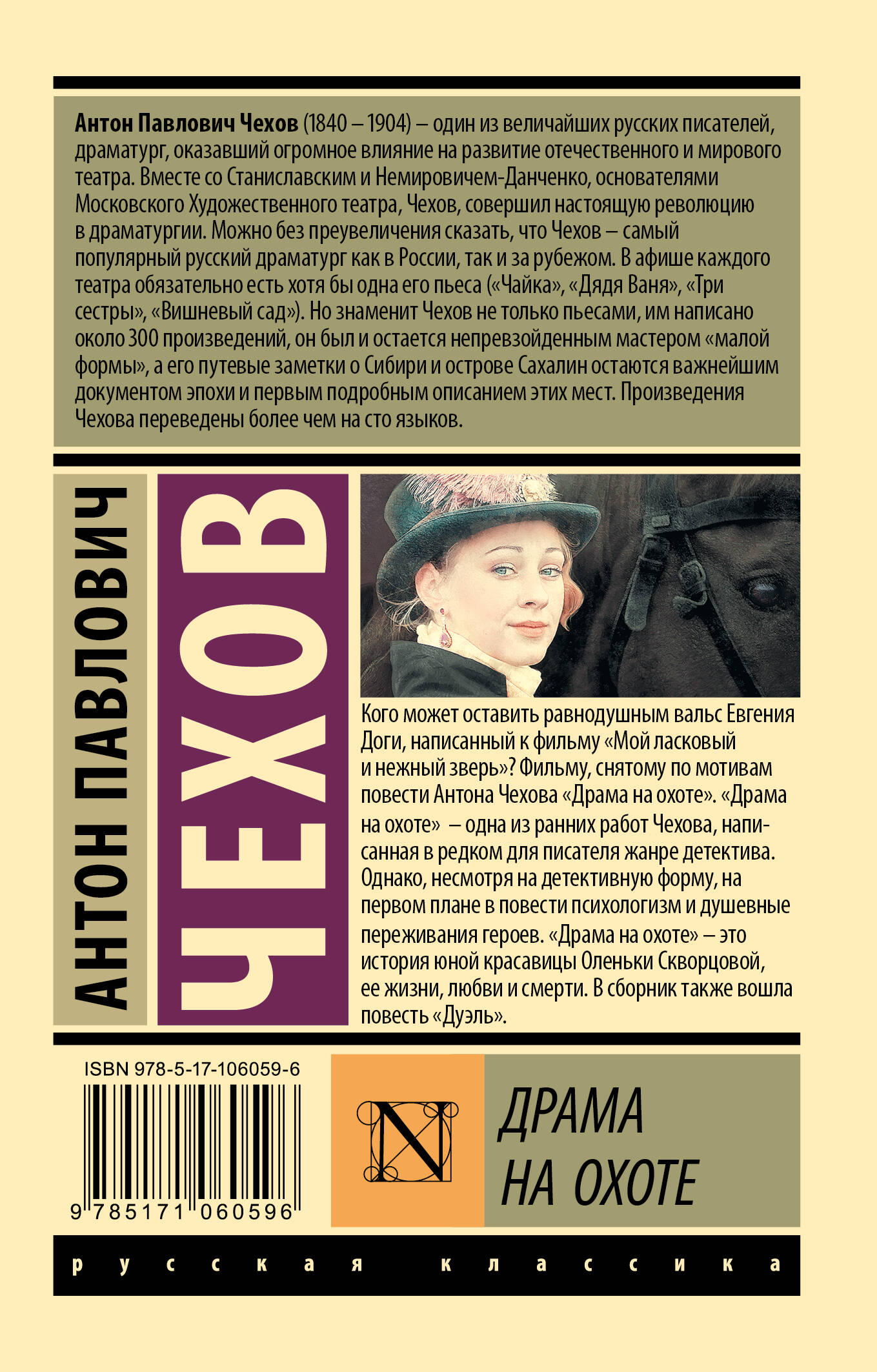 Кого может оставить равнодушным вальс Евгения Доги, написанный к фильму "Мой ласковый и нежный зверь"? Фильму, снятому по мотивам повести Антона Чехова "Драма на охоте". "Драма на охоте" - одна из ранних работ Чехова, написанная в редком для писателя жанре детектива. Однако, несмотря на детективную форму, на первом плане в повести психологизм и душевные переживания героев. "Драма на охоте" - это история юной красавицы Оленьки Скворцовой, ее жизни, любви и смерти. В сборник также вошла повесть "Дуэль".| Издательство | ИЗДАТЕЛЬСТВО "АСТ" |