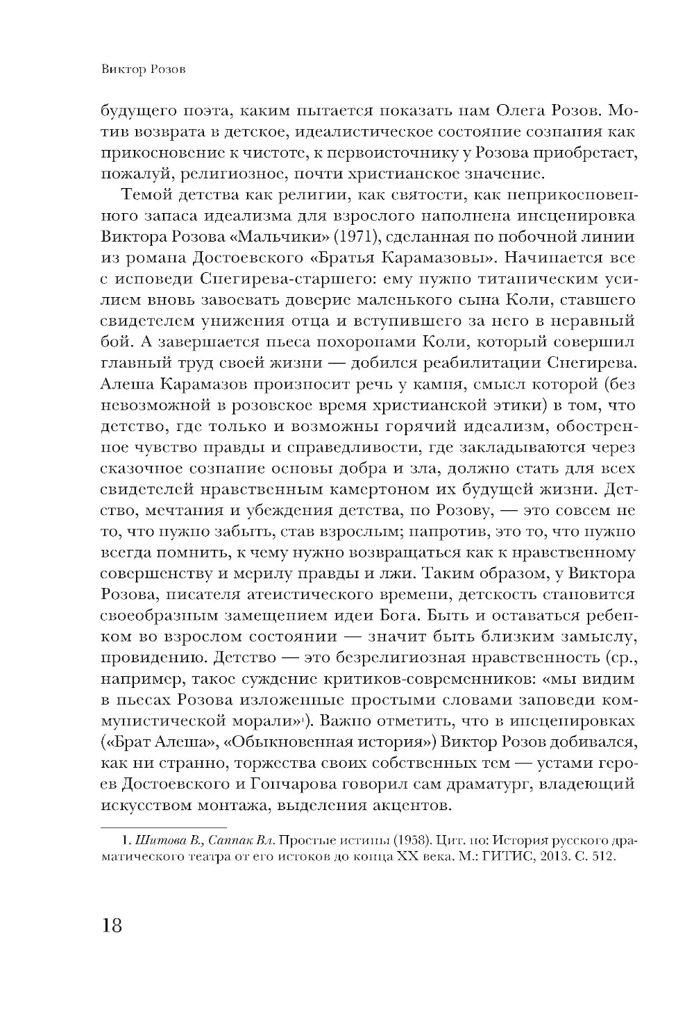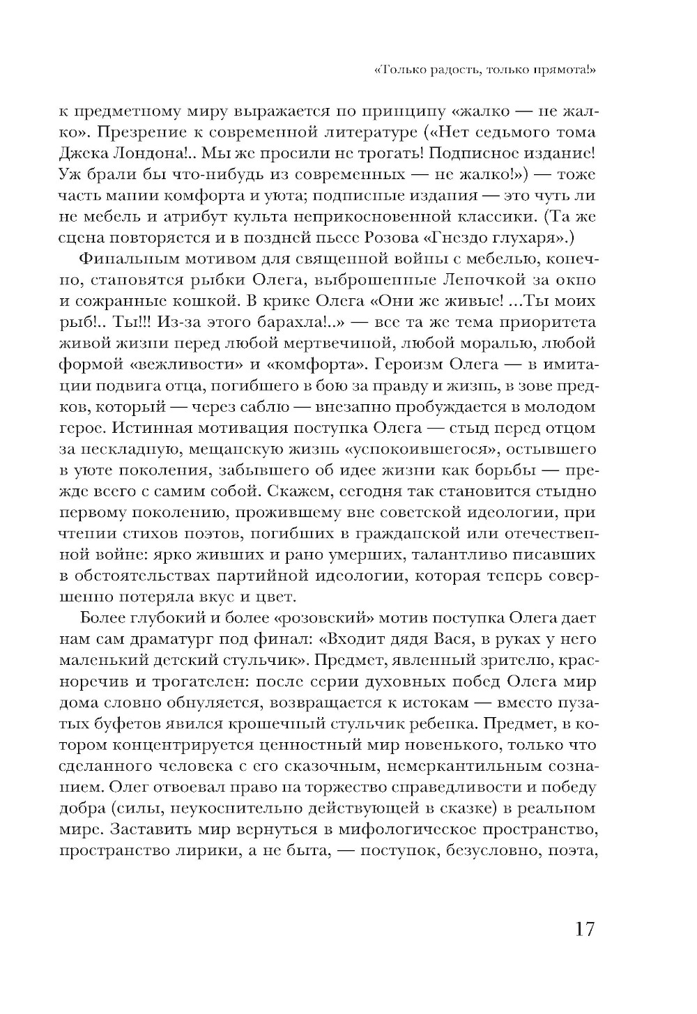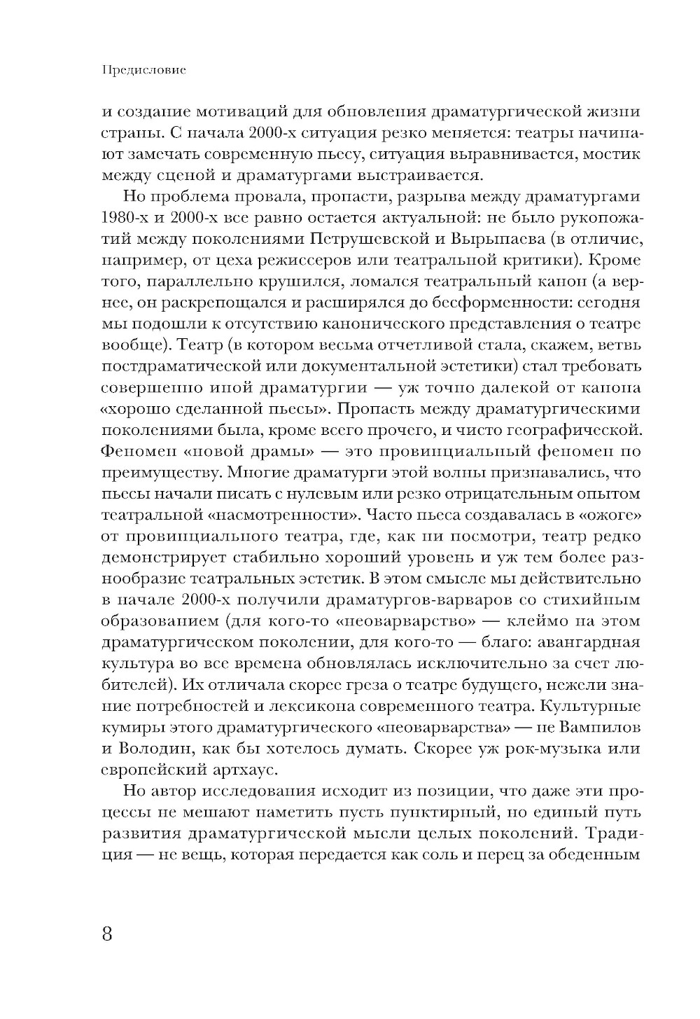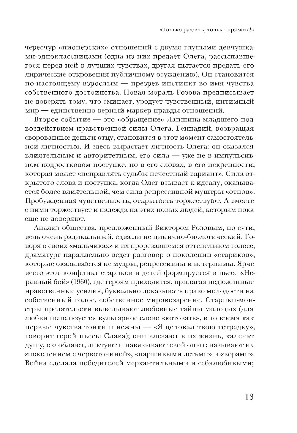 В монографии предпринята попытка представить картину советской послевоенной и постсоветской драматургии с 1950-х годов до наших дней, от В. Розова до И. Васьковской. У автора две задачи: взглянуть на развитие советской драматургии с точки зрения человека начала XXI века, когда канон советского театра более не властен над нынешней театральной реальностью, и поддержать идею непрерывности развития современной пьесы в России. Исследователь опровергает мнение о пропасти между поколениями и подчеркивает, что художественные и нравственные искания авторов советского периода не прерваны, а находят продолжение в драматургии новейшего времени. Книга представляет имена не только известных (А. Арбузов, А. Вампилов, Л. Петрушевская, В. Ерофеев, Н. Коляда, Е. Гришковец, В. Сигарев и другие), но и почти забытых авторов. Некоторые главы посвящены отдельным явлениям - производственной пьесе, «усадебной драматургии», «новой драме», документальному театру и т.д. П. Руднев - театральный критик, кандидат искусствоведения, помощник художественного руководителя МХТ им. А.П. Чехова и ректора Школы-студии МХАТ по спецпроектам. Автор монографии «Театральные взгляды Василия Розанова» (2003).| Издательство | Новое литературное обозрение |