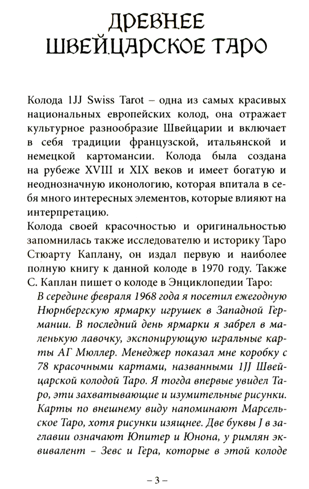 «Древнее швейцарское Таро» - результат соединения традиций Марсельского таро, Итальянской колоды, Тароко Маниканте и таро Гранд Этейла. Смешение этих совершенно разных культур привело к тому, что некоторые карты получили новое видение - Иерофант стал Юпитером, а Верховная жрица - Юноной.| Издательство | Издатель А.Г.Москвичев |