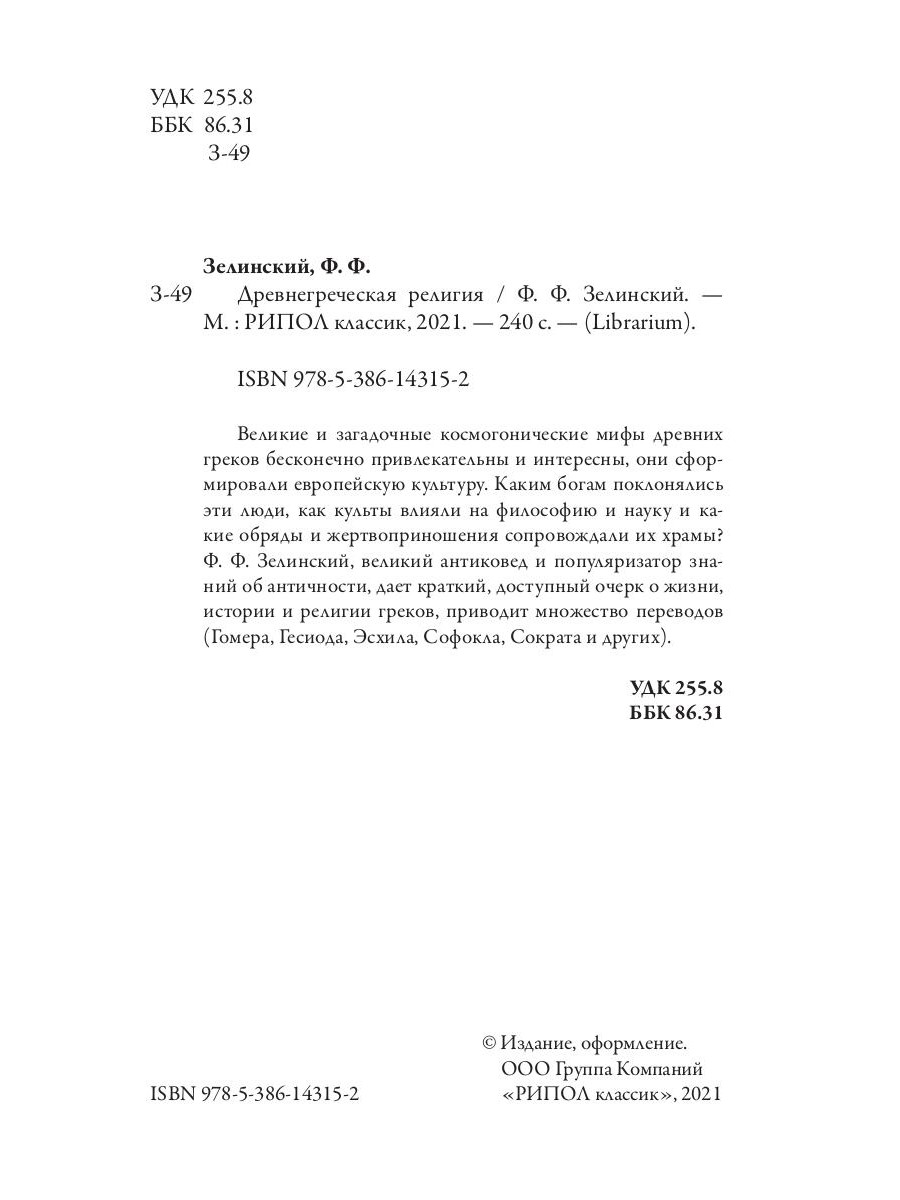 Великие и загадочные космогонические мифы древних греков бесконечно привлекательны и интересны, они сформировали европейскую культуру. Каким богам поклонялись эти люди, как культы влияли на философию и науку и какие обряды и жертвоприношения сопровождали их храмы? Ф.Ф. Зелинский, великий антиковед и популяризатор знаний об античности, дает краткий, доступный очерк о жизни, истории и религии греков, приводит множество переводов (Гомера, Гесиода, Эсхила, Софокла, Сократа и многих других).